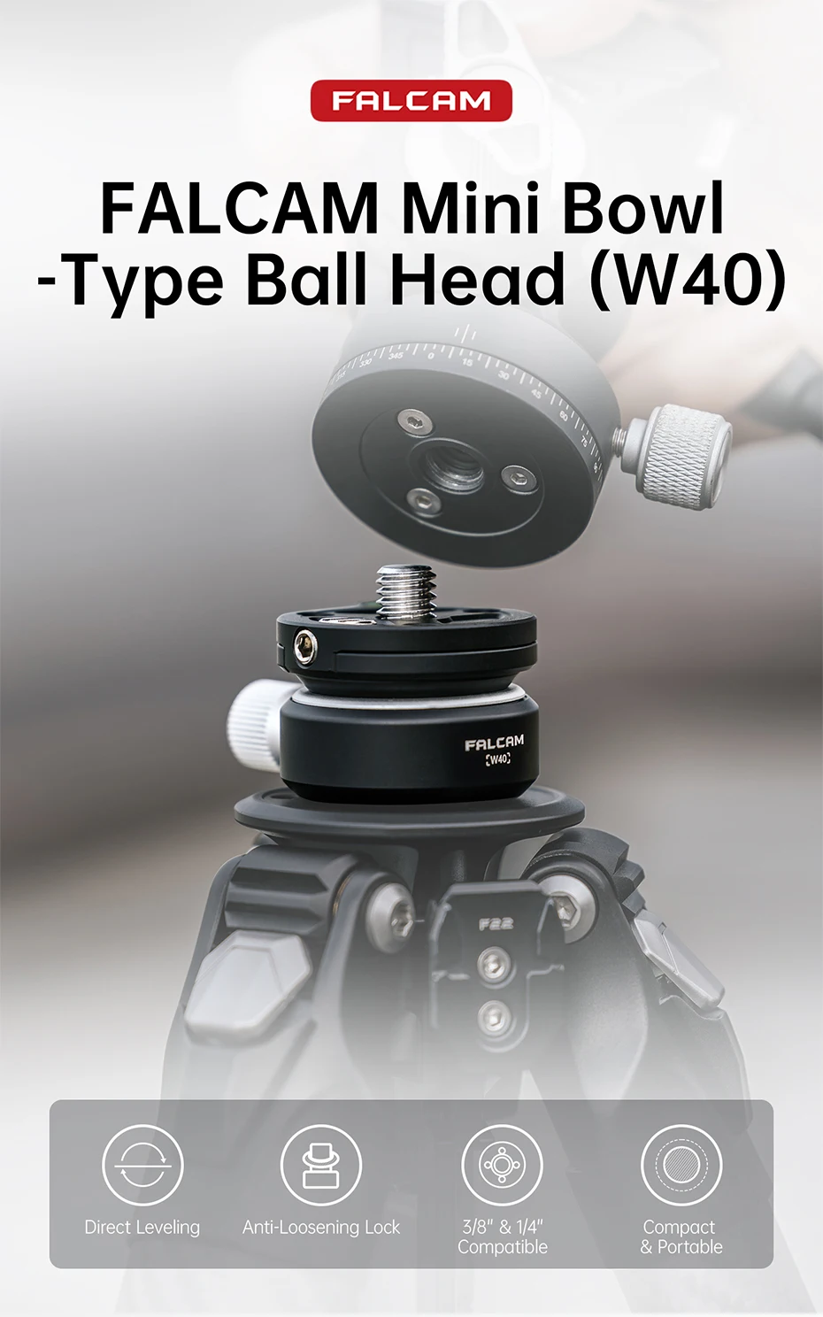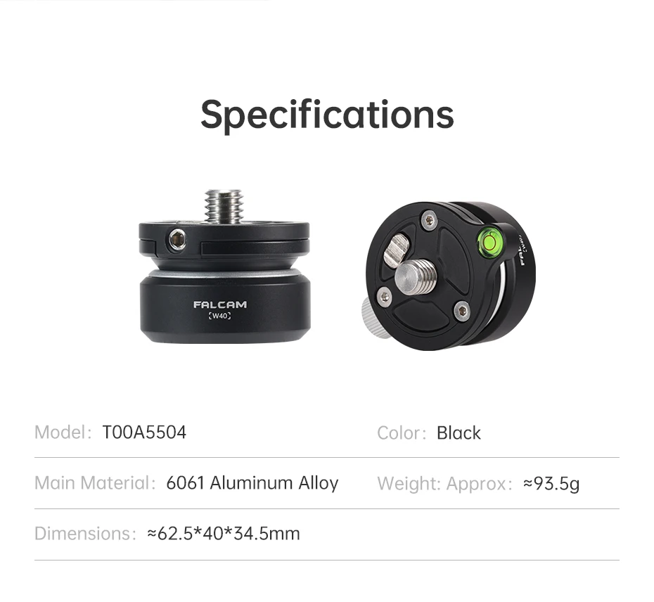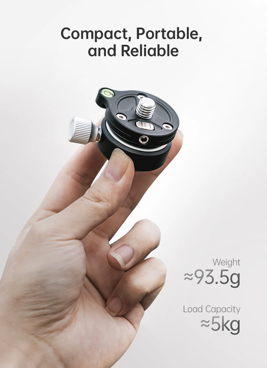 Ulanzi FALCAM Mini bol tipo rótula (W40) ±8 ° Ajuste de inclinación 360 ° Carga de ajuste de nivel Cabezal de bola de metal de 5 KG