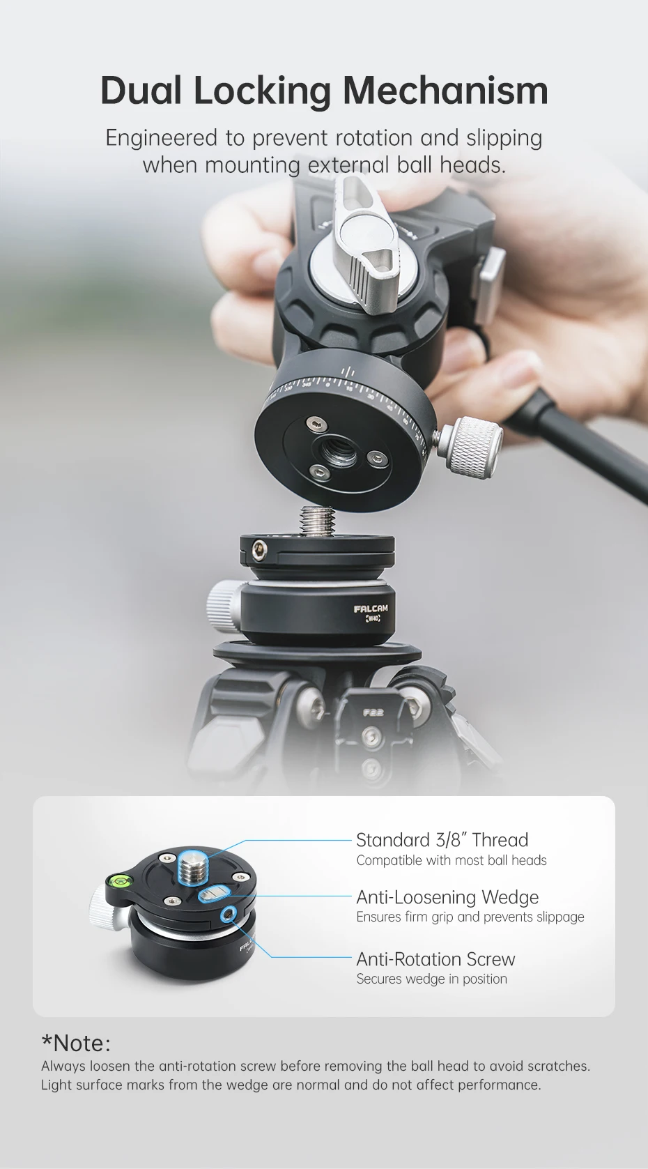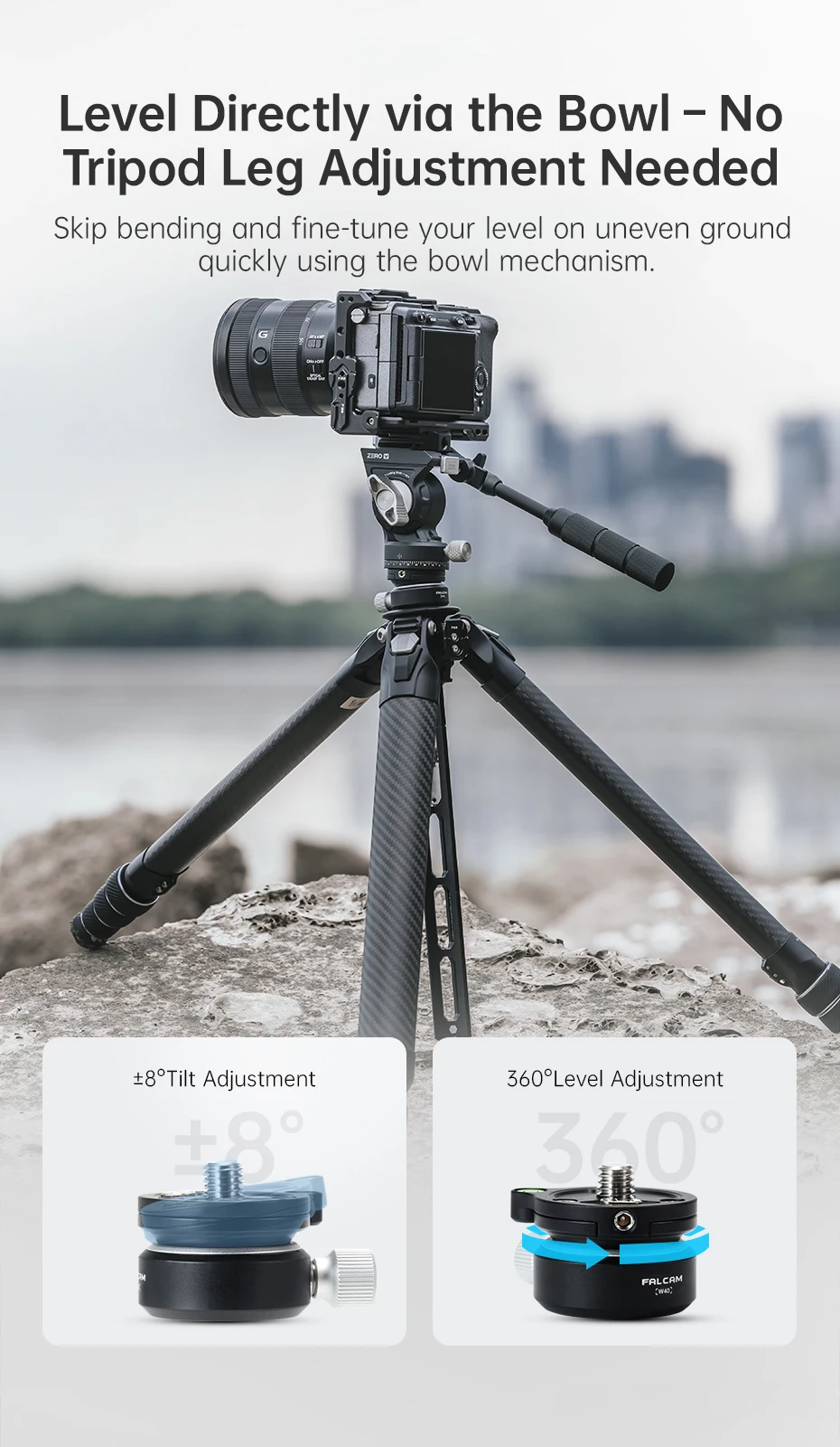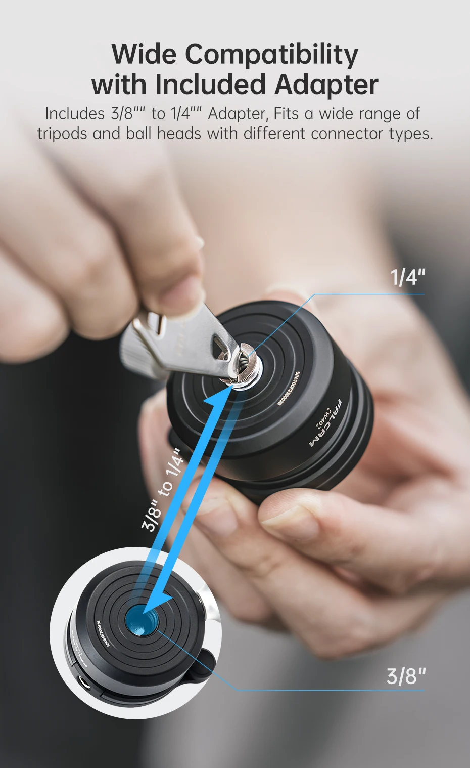 Ulanzi FALCAM Mini bol tipo rótula (W40) ±8 ° Ajuste de inclinación 360 ° Carga de ajuste de nivel Cabezal de bola de metal de 5 KG
