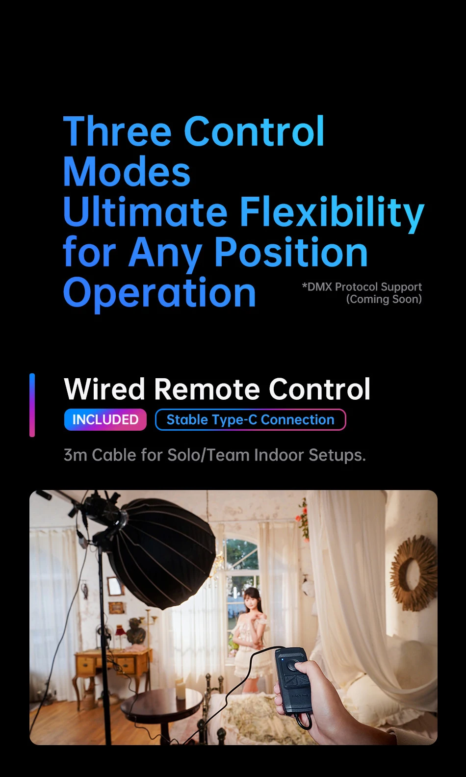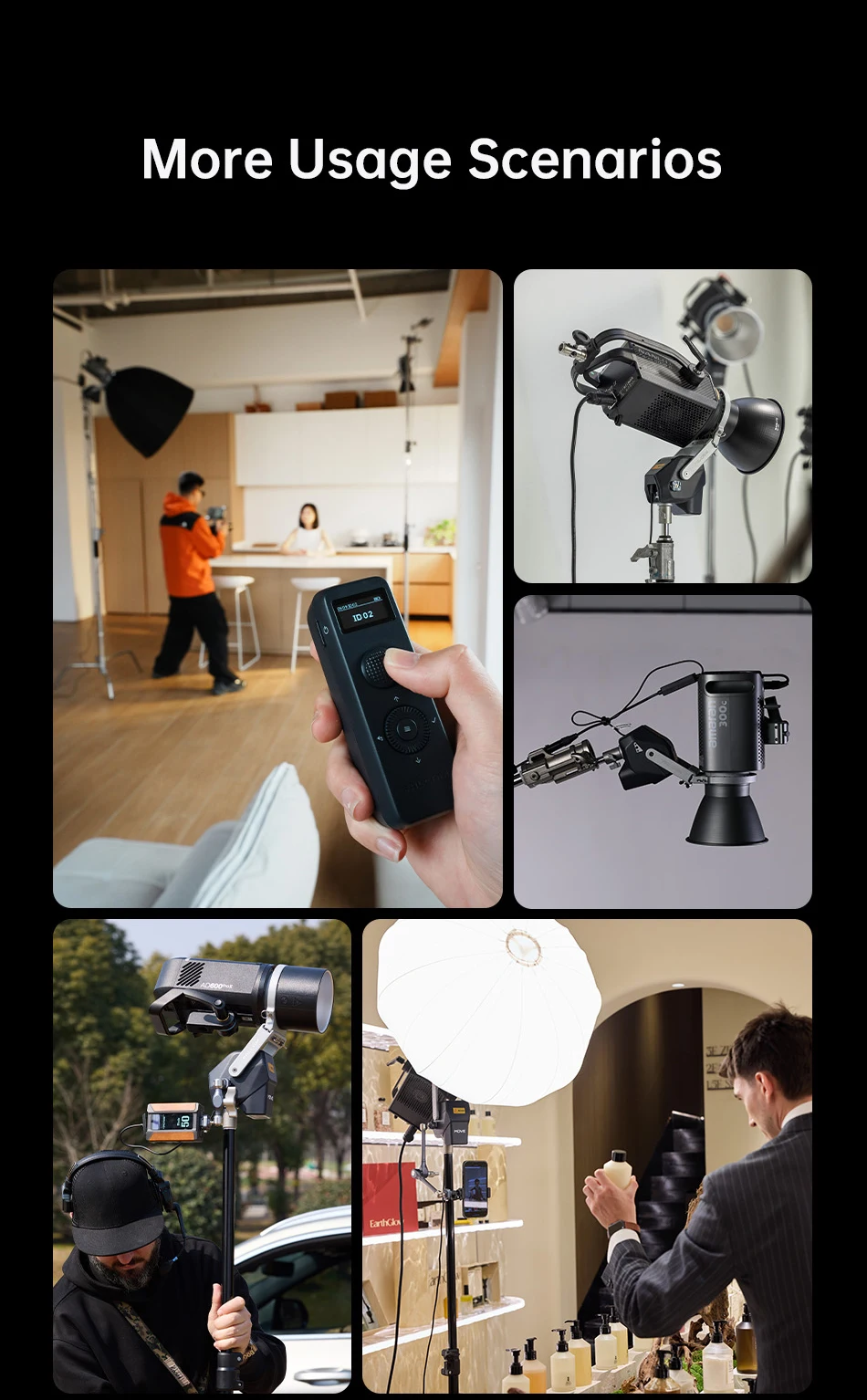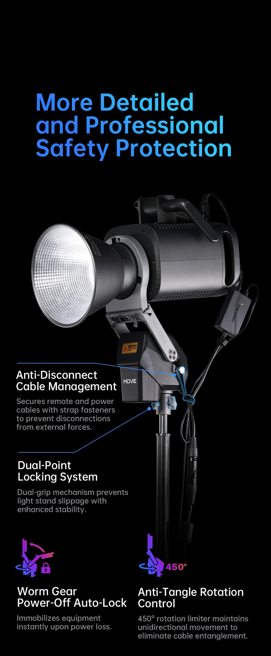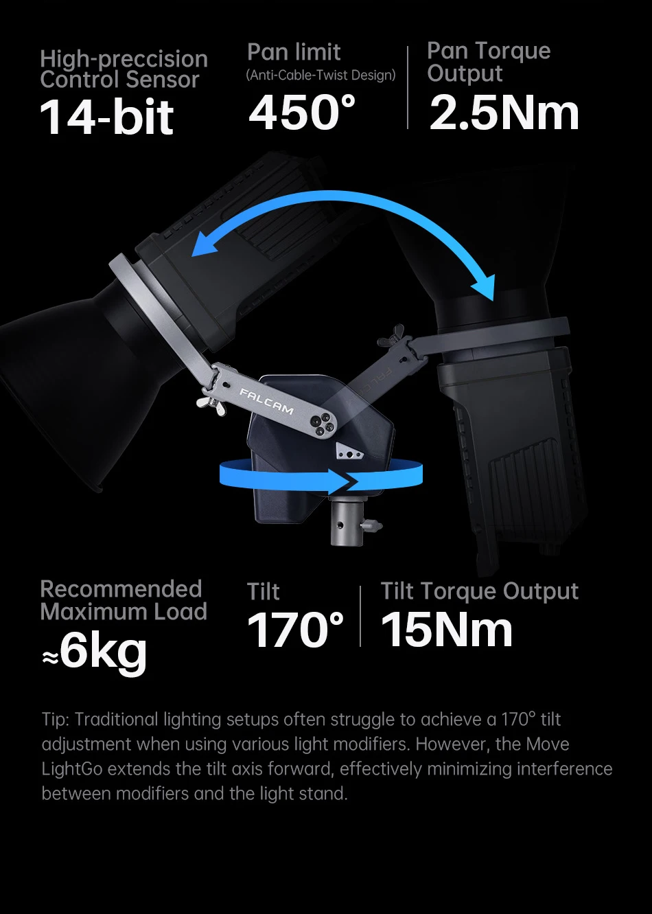 Ulanzi FALCAM MOVE LightGo Stuido Lightning Gimbal con soporte Bowens 450 ° Control remoto inalámbrico de aplicación ajustable con expansión de 1/4"