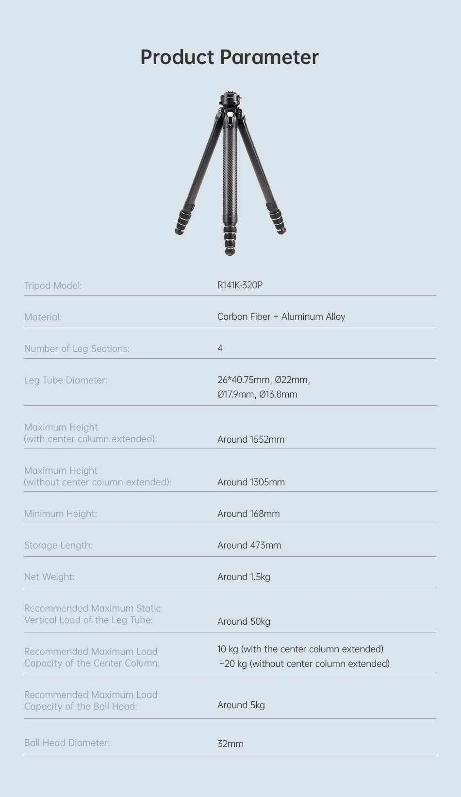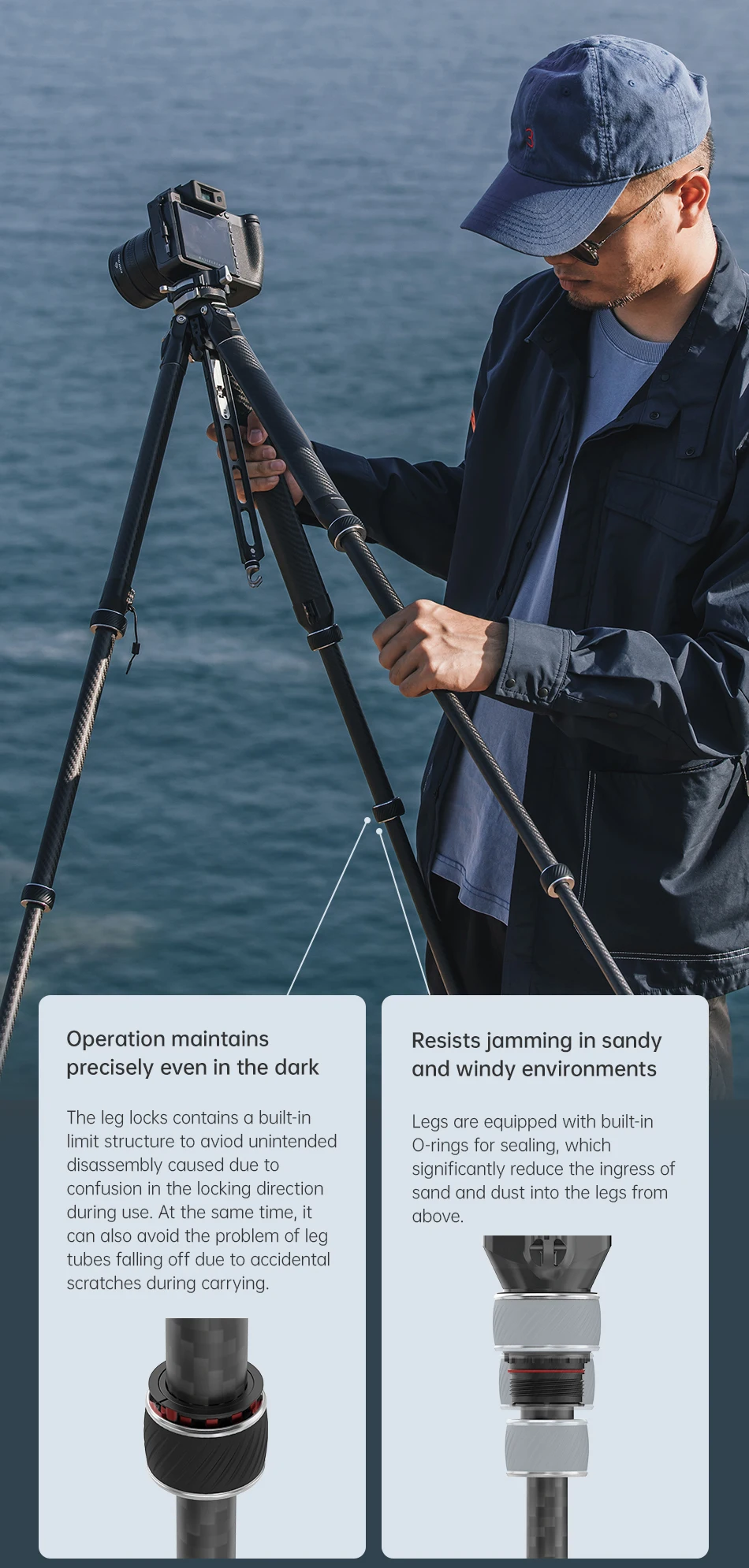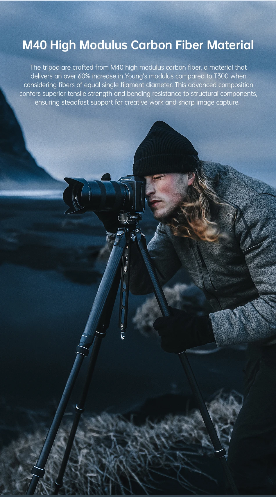 Ulanzi Falcam TreeRoot Quick Lock Travel Tripod M40 High Modulus Carbon Fiber Maximum Height 1552mm with F38 Pro Quick Release