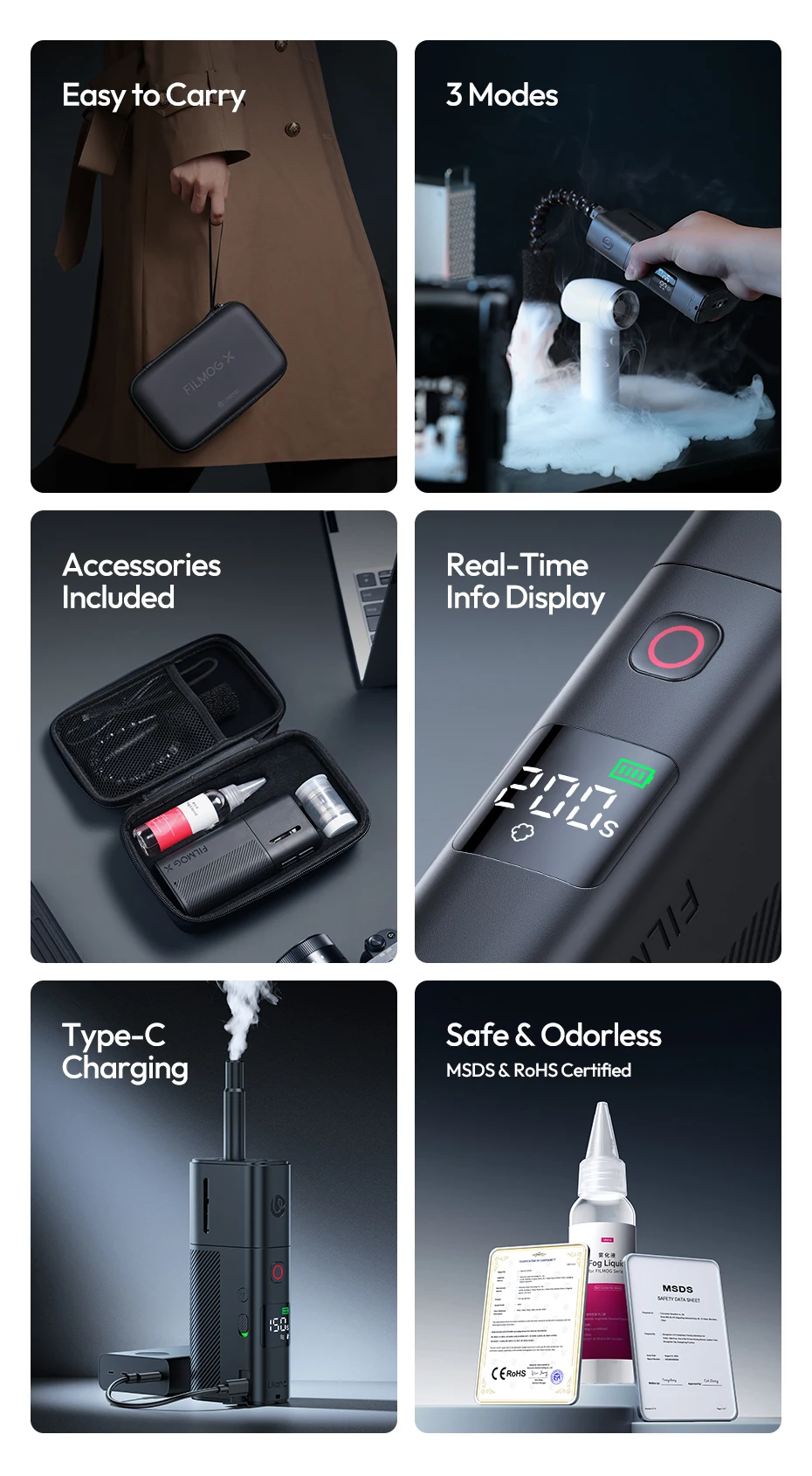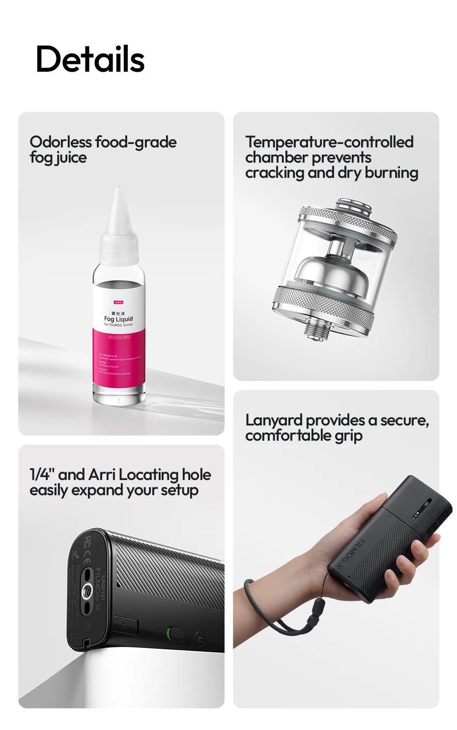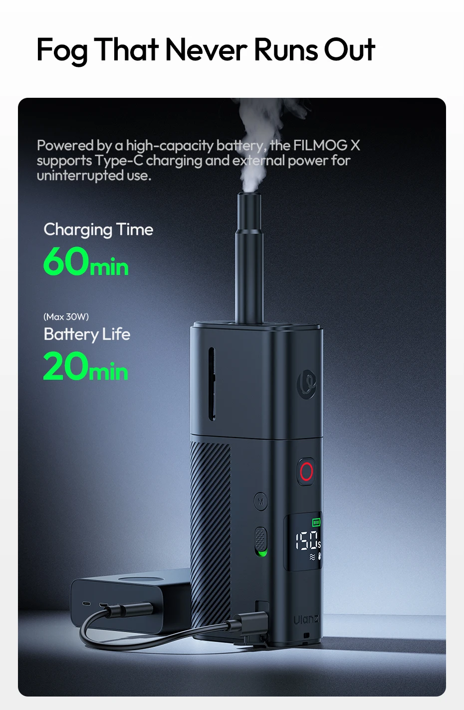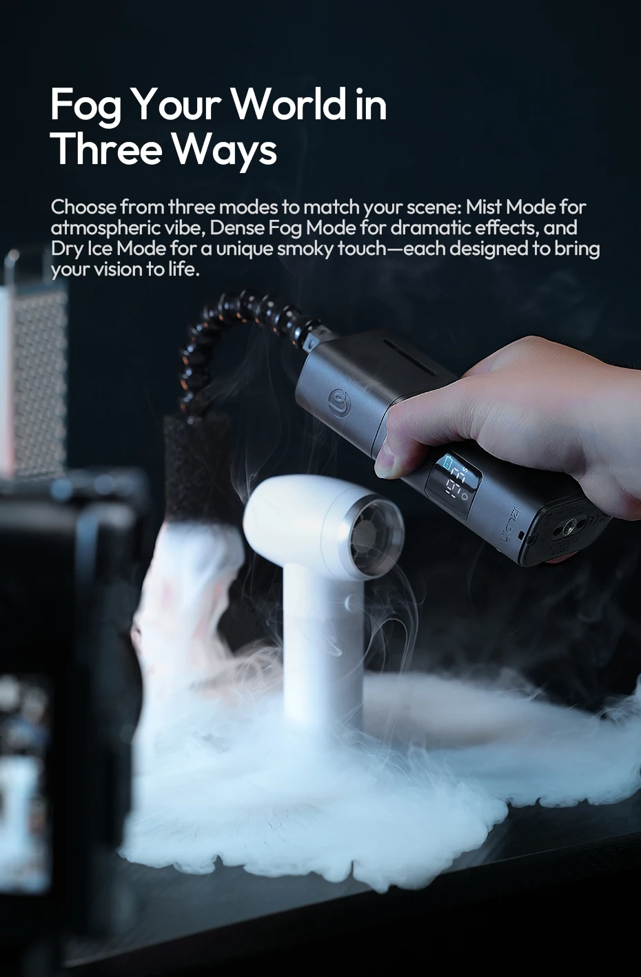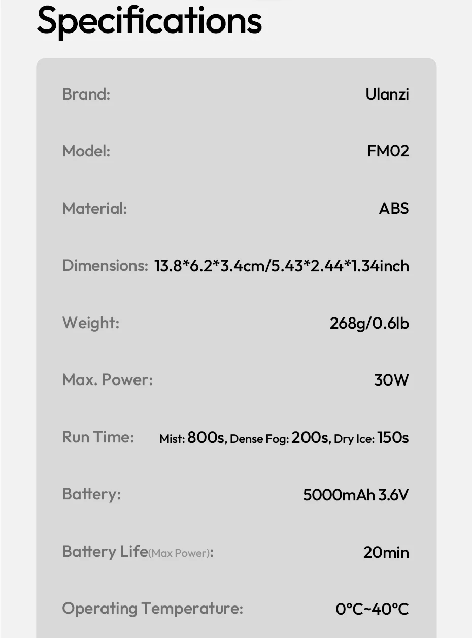 Excelente maquina de humo, a muy buen precio, y buena calidad como todo lo que he comprado de ulanzi, la maquina es completamente de plástico y en la parte de abajo trae una rosca de 1/4 para poner sobre un tripie, ya la use en dos ocasiones en interiores y hace un efecto de niebla muy bueno