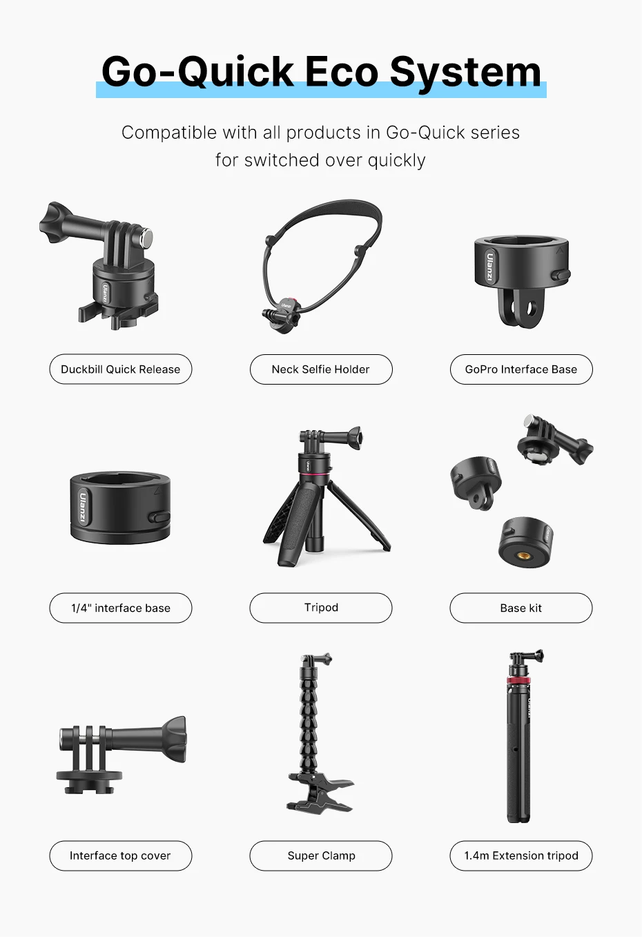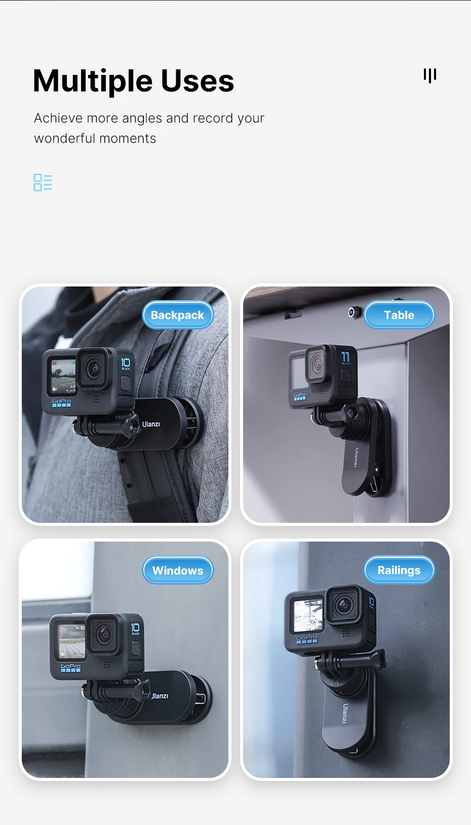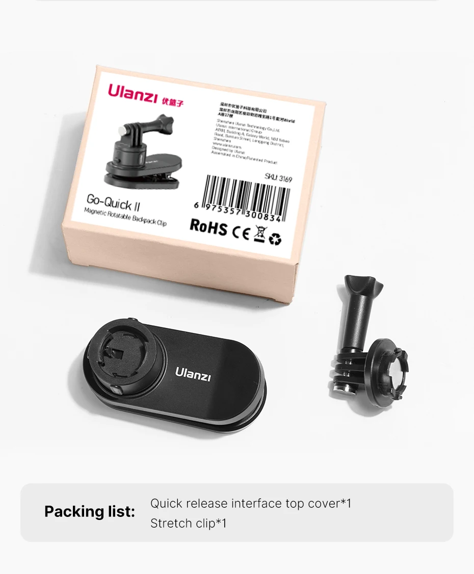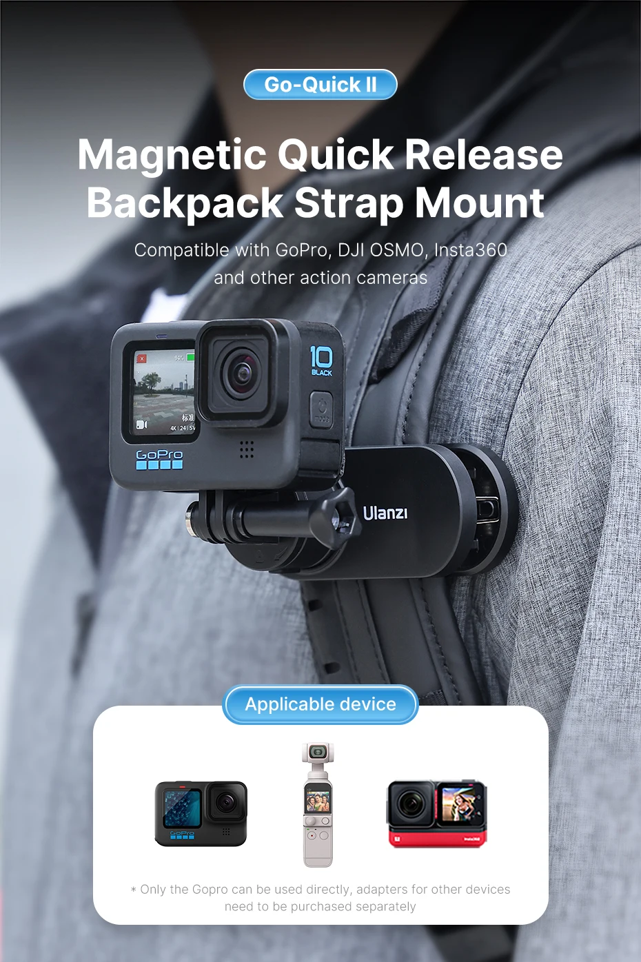 Ulanzi-Soporte de correa de mochila de liberación rápida magnética Go-Quick Ⅱ Compatible con cámara de acción Gopro DJI OSMO Insta360
