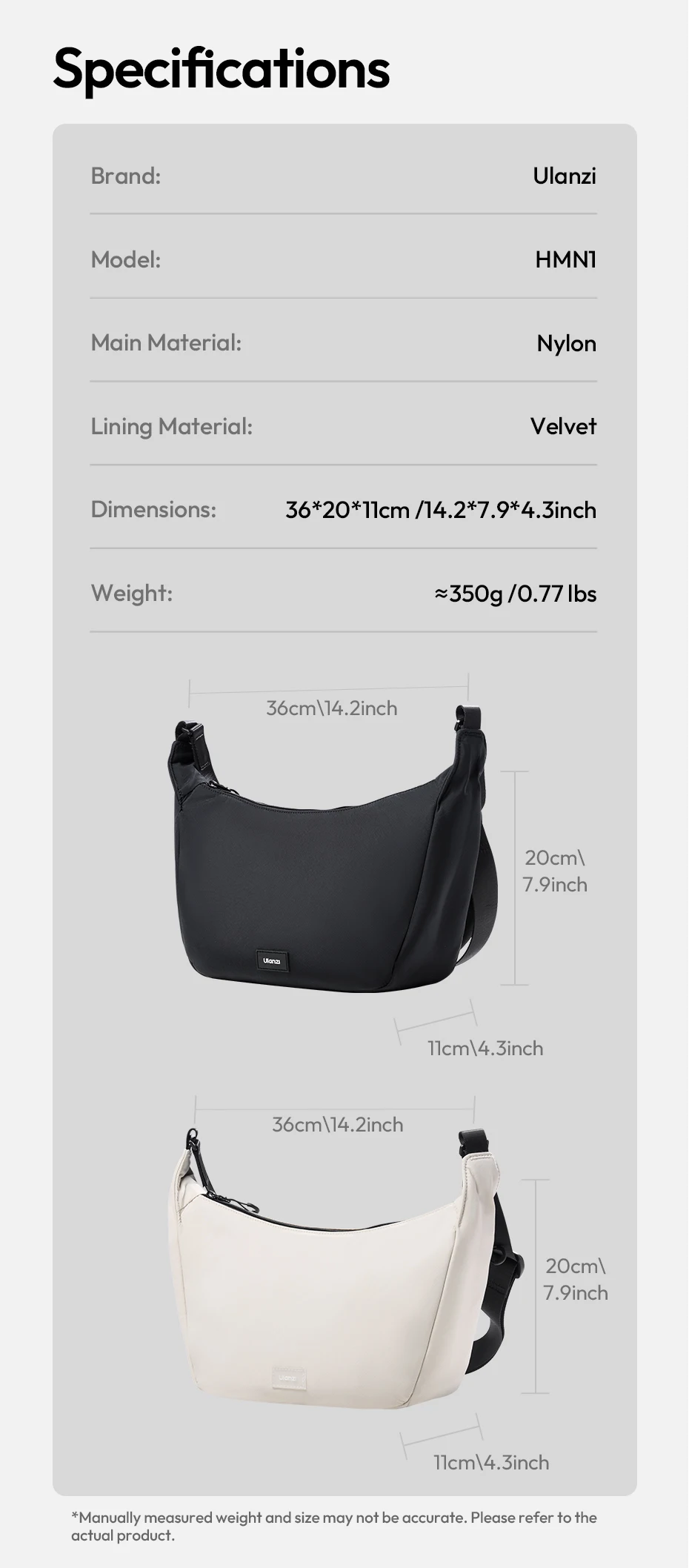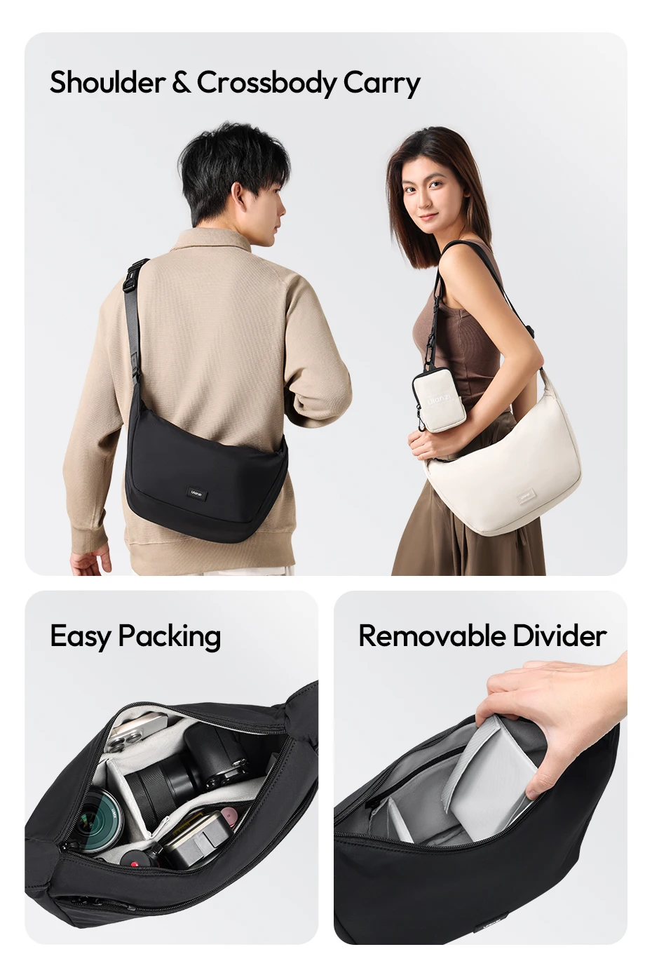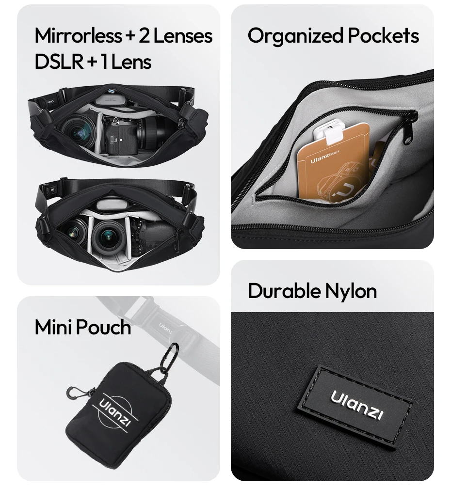 Comprar Ulanzi HMN1Lunar Sling Bag Bolso de viaje con divisor Correa ajustable Crossbody Carry para fotografía Lente de cámara sin espejo