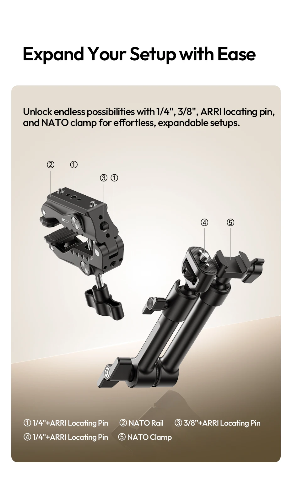 Ulanzi HD02 10 inch Magic Arm with Super Clamp Kit 1/4" Screw Cold Shoe 360° Adjustable Ball Head for Monitor Mount Camera Mount