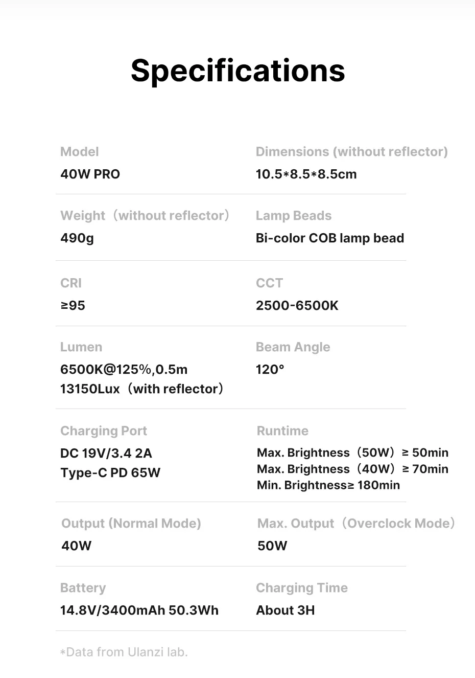 Ulanzi L023 40W Pro Video Light Luz COB bicolor