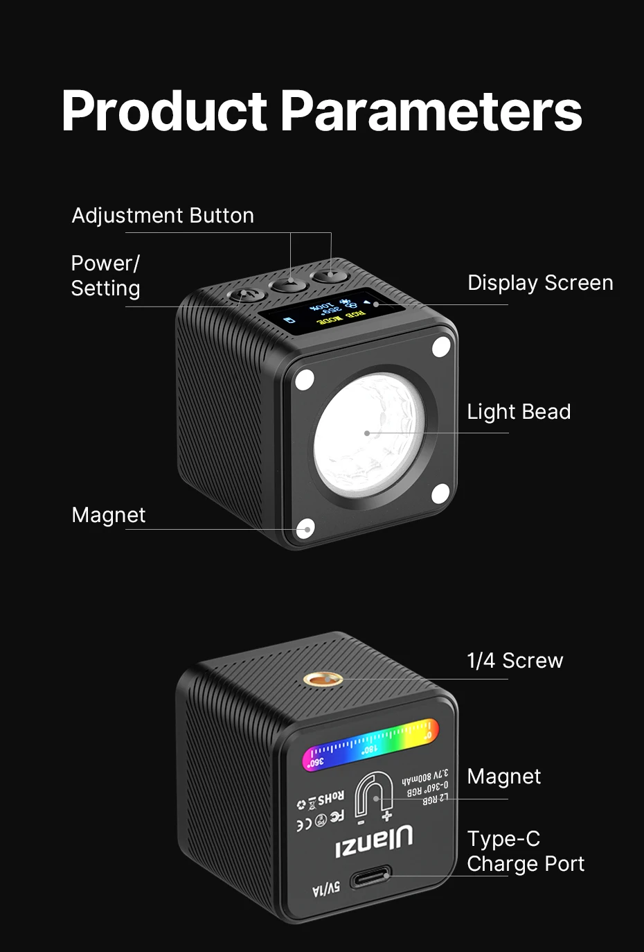 Comprar Ulanzi L2 Mini RGB COB Luz de vídeo Dimmable Luz de cámara con difusor de nido de abeja. Fotografía, luz, para Gopro cámara DSLR teléfono
