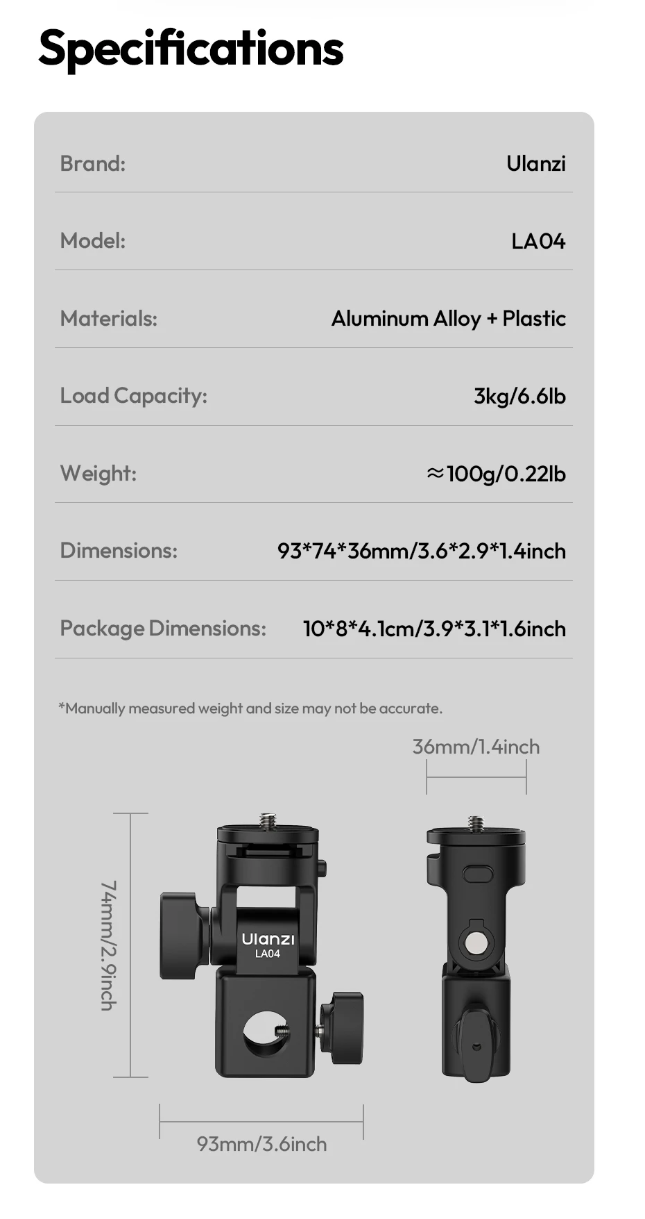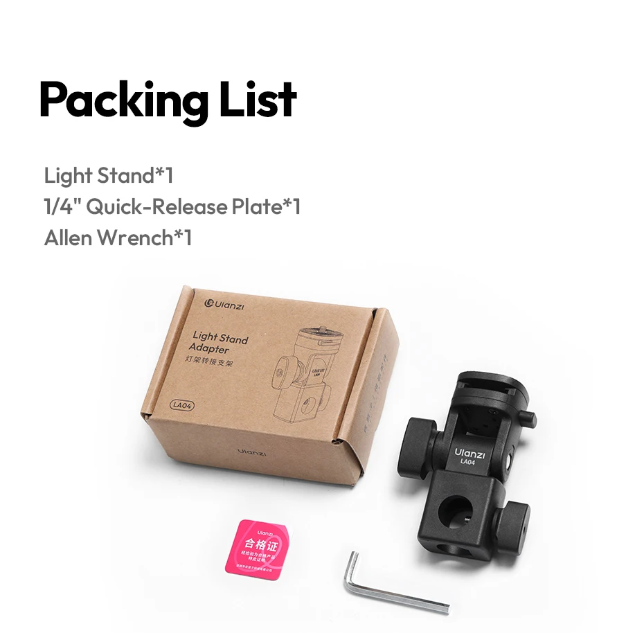 Adaptador de soporte de luz universal Ulanzi LA04 con soporte de zapata fría de 1/4" para soporte de teléfono cámara DSLR luz LED 180° Inclinación para iluminación