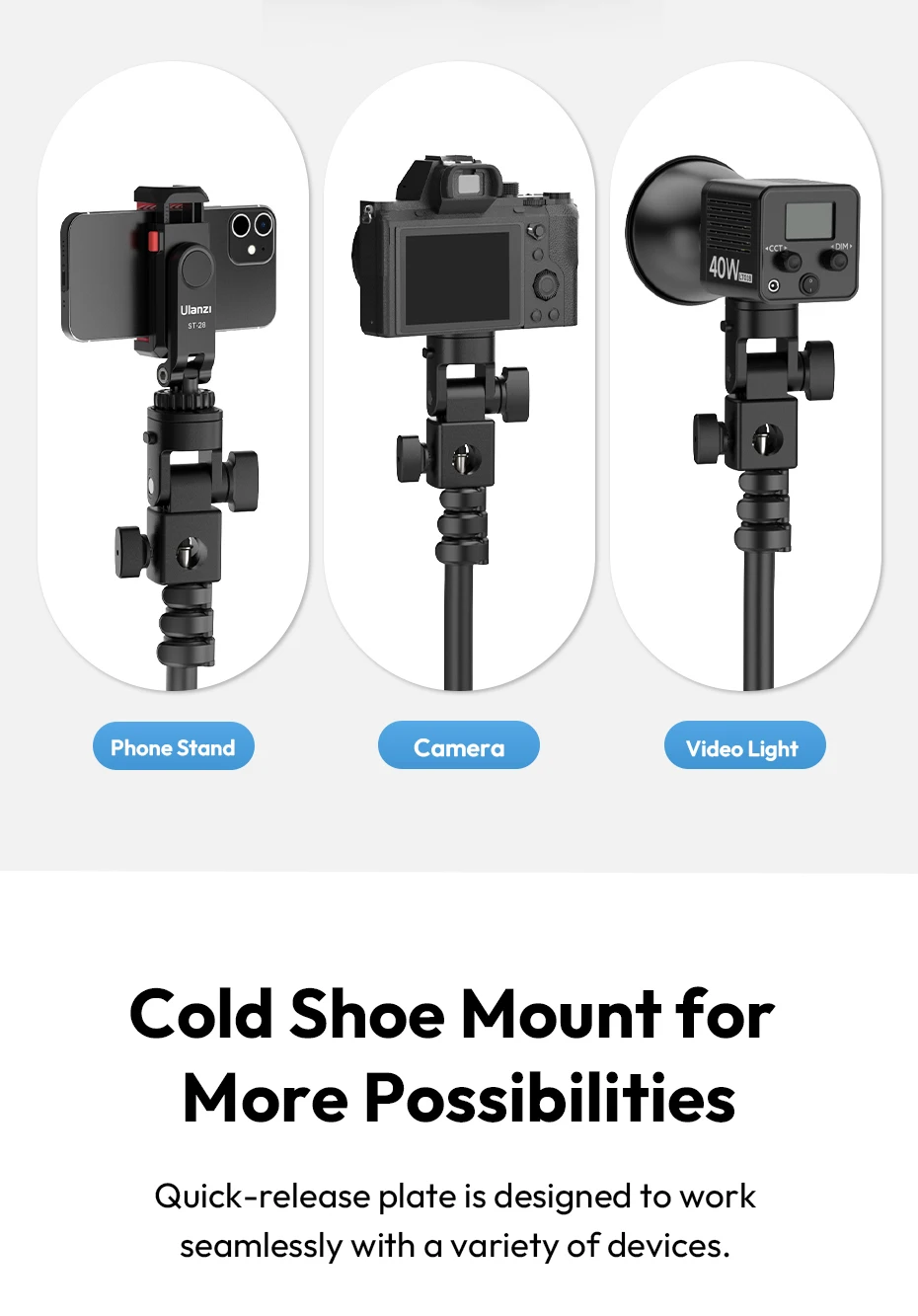 Comprar Ulanzi LA04 Adaptador de soporte de luz universal con soporte de zapata fría de 1/4" para soporte de teléfono Cámara DSLR Luz LED 180 ° Inclinación para iluminación