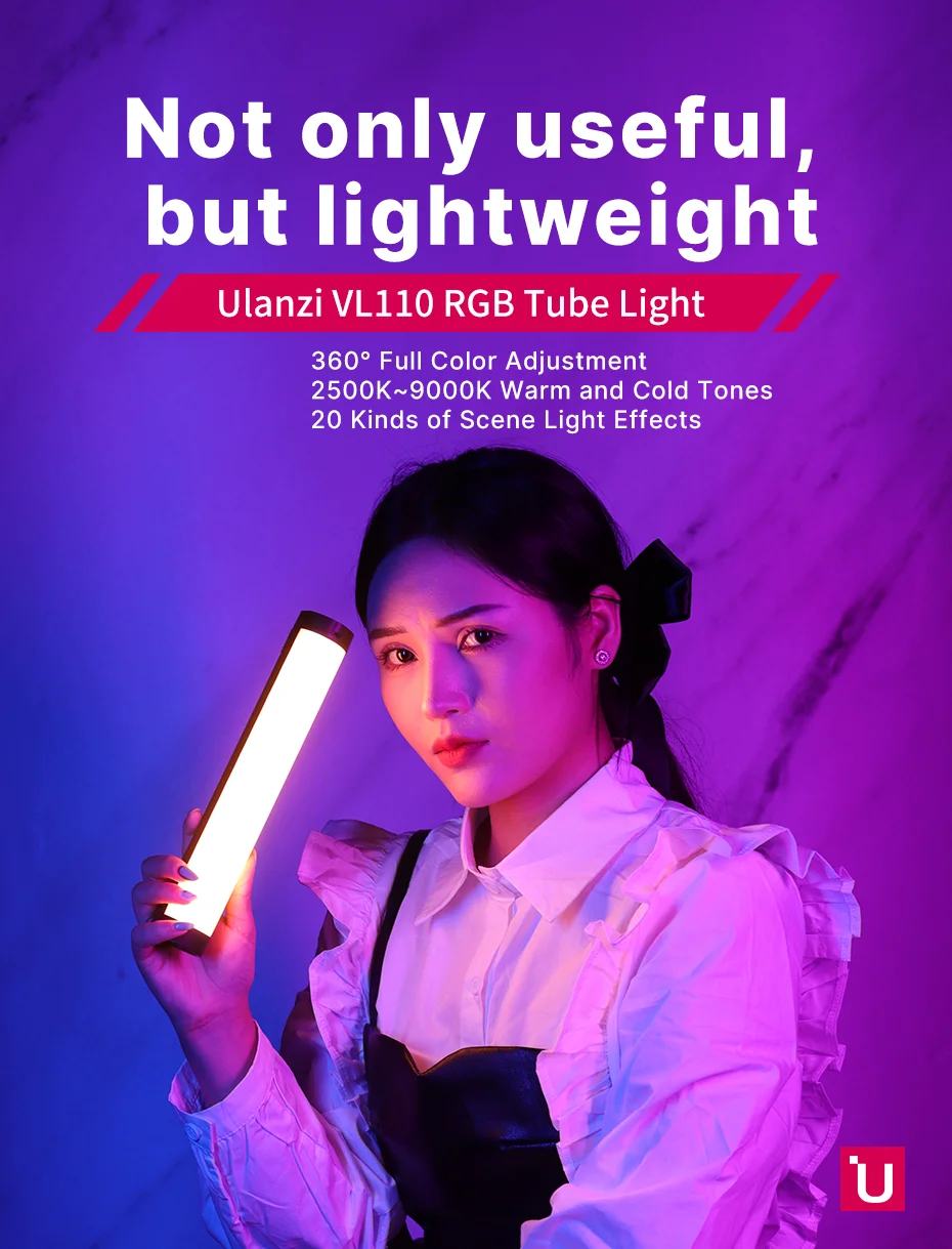 Comprar Ulanzi-Lámpara de fotografía VL110, tubo RGB, 2500-9000K, 2600mAh, recargable, portátil, estudio, Camping, Kit de iluminación de relleno para Youtube