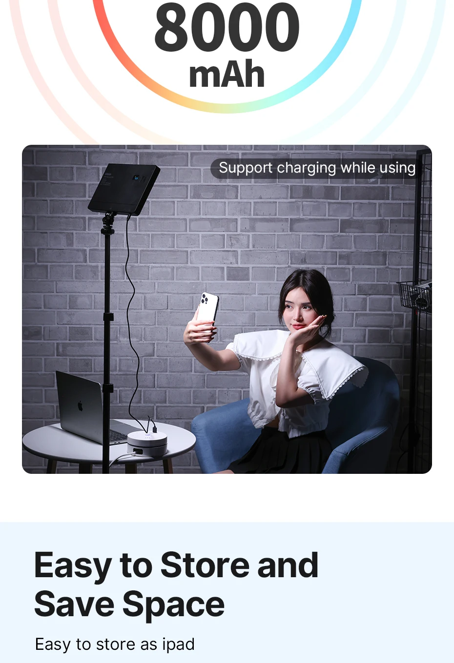 Comprar Ulanzi LT003 15W RGB luz de vídeo Panel de luz a todo Color 8000mAh lámpara de cámara de estudio de fotografía recargable 2500-9000K CRI 95+