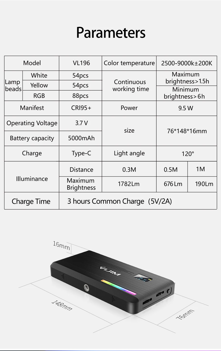 Comprar Ulanzi-luz LED para vídeo VIJIM VL196, RGB, DSLR, luz de relleno para Smartphone, efecto RGB regulable, luz Vlog en cámara, 5000mAh