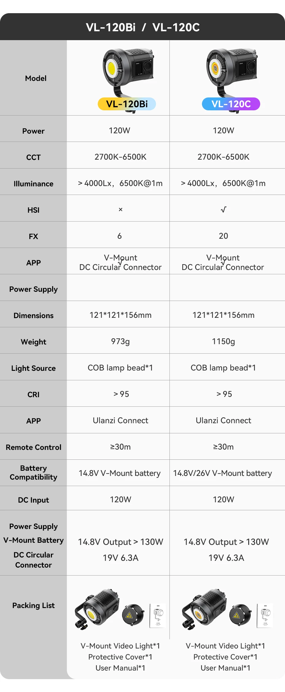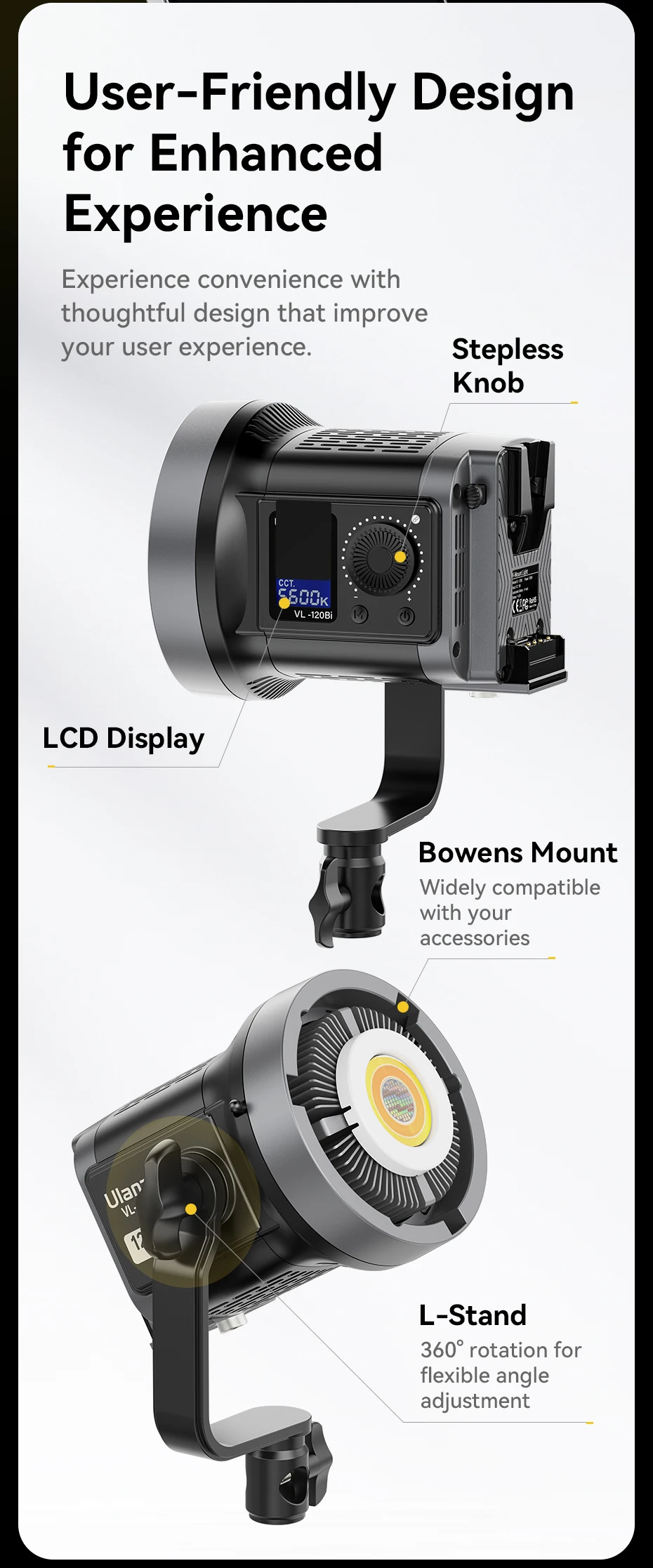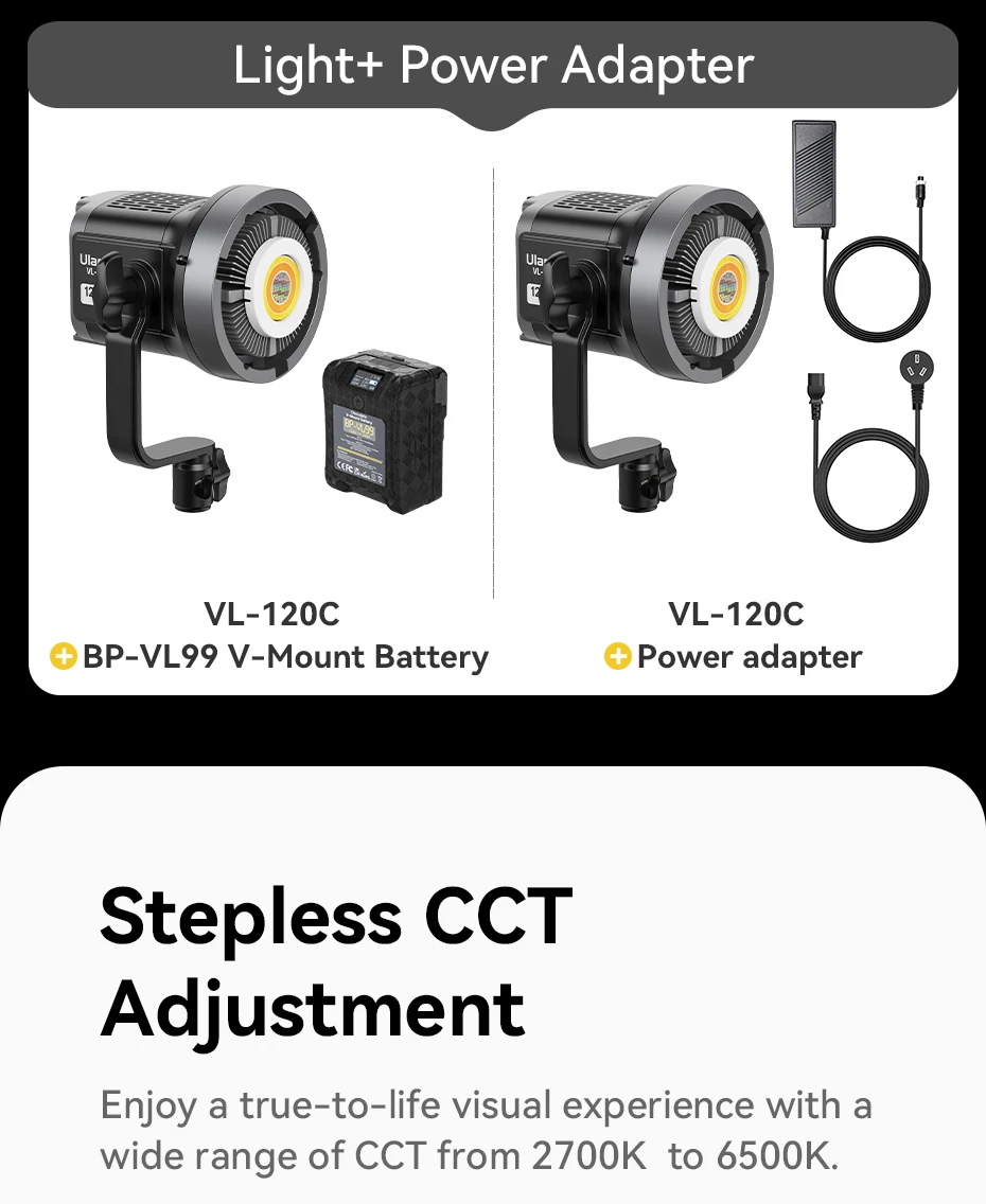 Comprar Ulanzi-luz de relleno de vídeo con montaje en V, VL-120Bi, 120W, 2700-6500K, montura en V y fuente de alimentación Dual CC para fotografía en vivo
