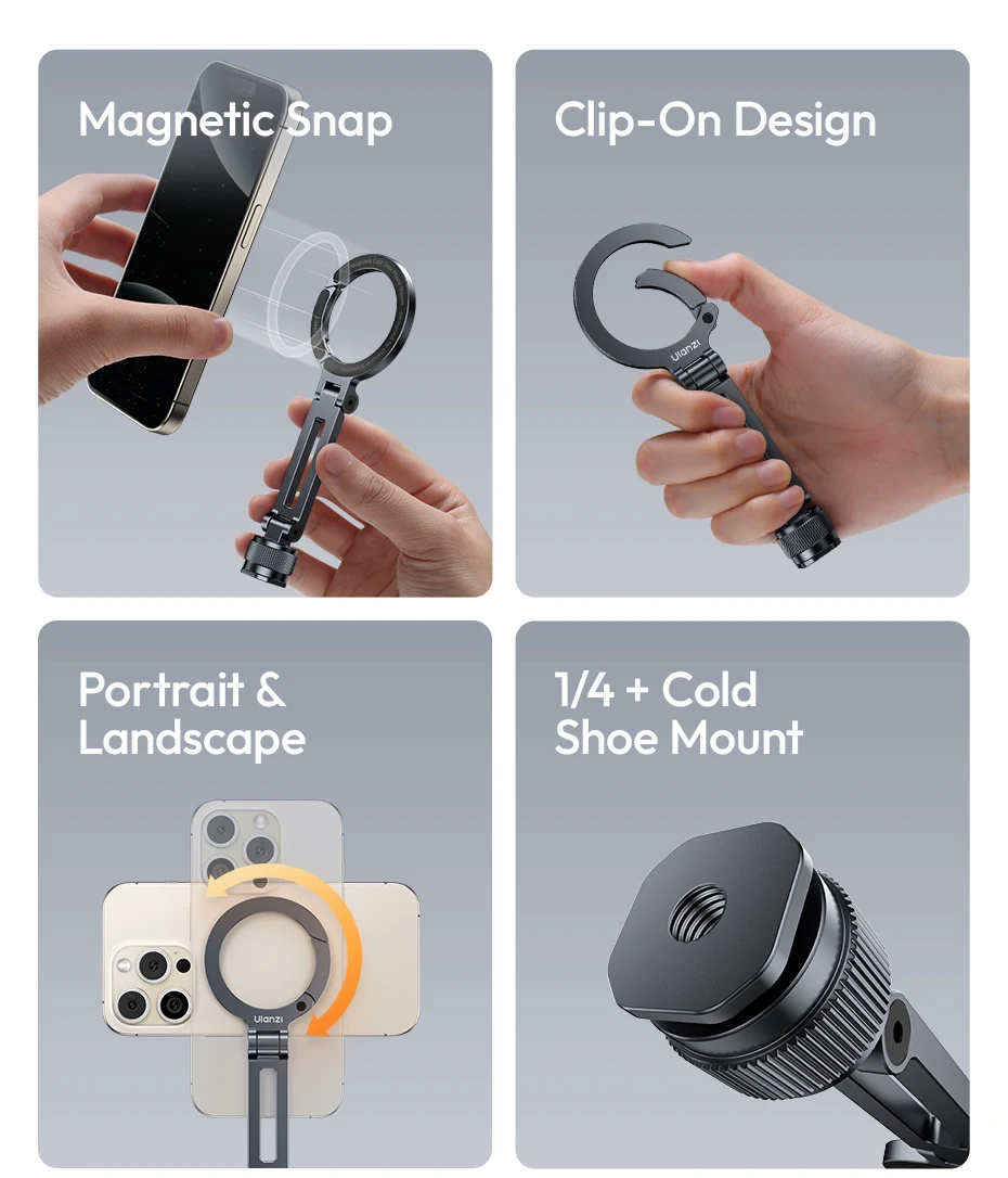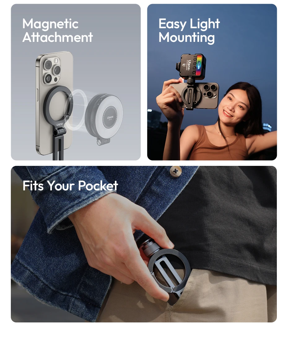 Ulanzi MA07 Maglock 1/4 soporte para teléfono con zapata fría broche magnético portátil para mochila de viaje bolso bandolera para teléfono inteligente Camrea trípode