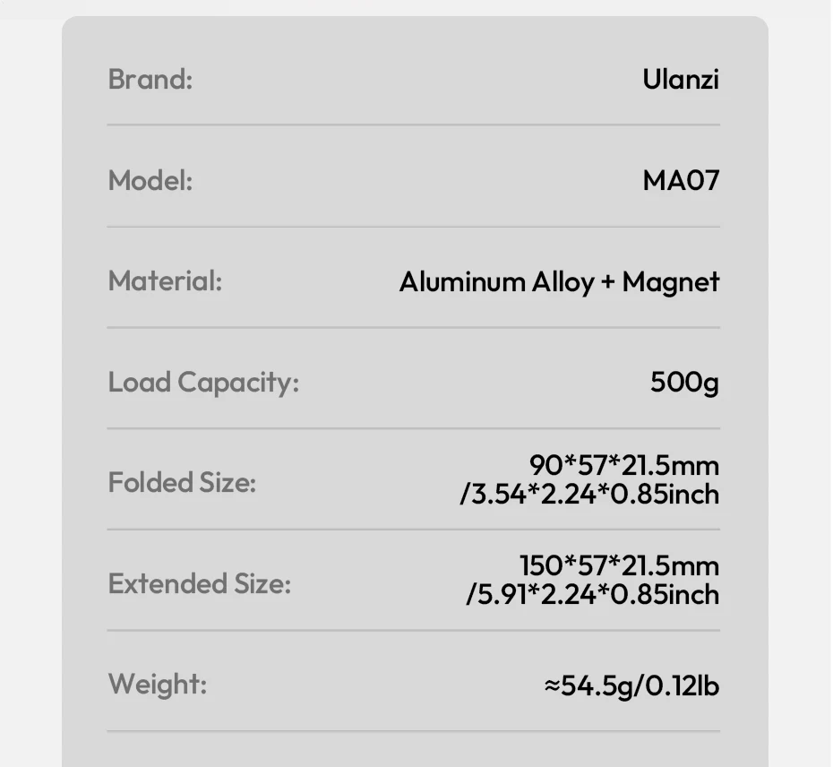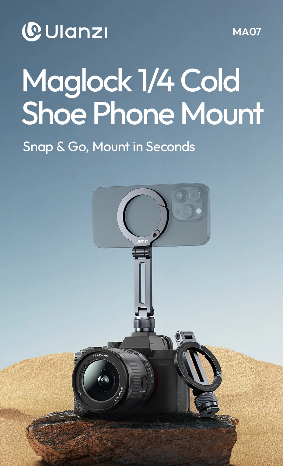 Soporte para teléfono Ulanzi MA07 Maglock 1/4 con zapata fría