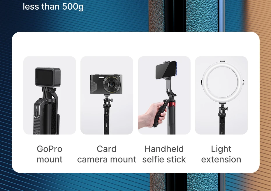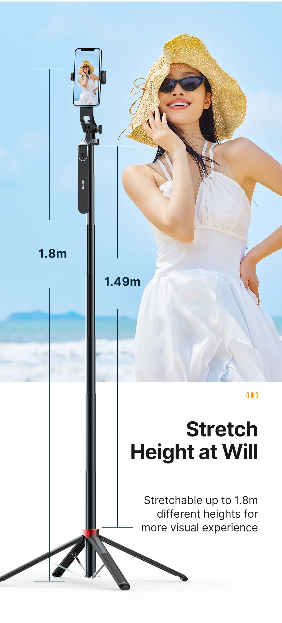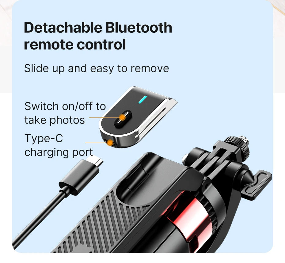 Estoy muy satisfecho. El puerto de carga del control remoto es de tipo C. Al usar el trípode para selfies de Benro, me decepcionó que la altura fuera corta. Ahora la longitud de extensión ha aumentado en 500 mm más que el trípode automático BENRO, aproximadamente 1300 mm. Pero el peso es de aproximadamente 400 g, ¡aproximadamente el doble que los productos de Benro! Si deseas llevarlo contigo mientras haces senderismo, también deberías buscar adaptadores ligeros y fáciles de colocar y quitar para las correas de la mochila.