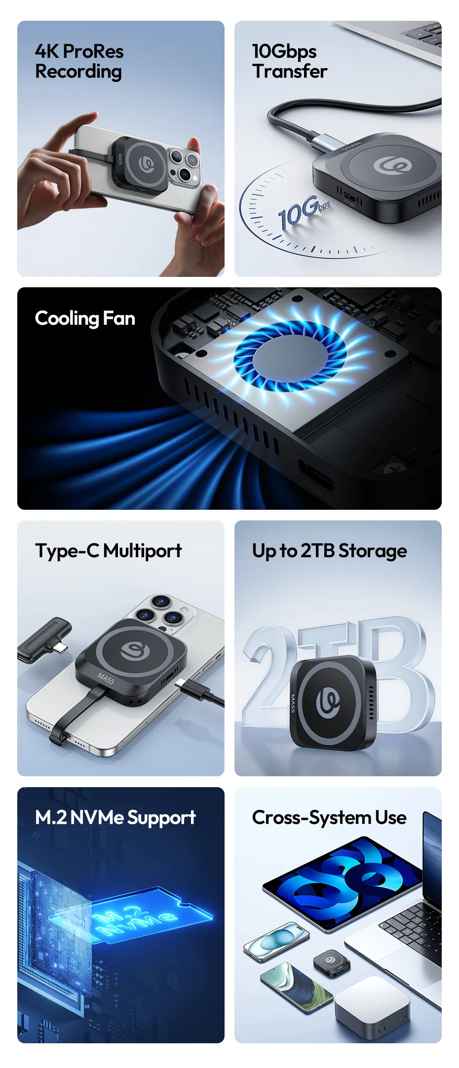 Comprar Ulanzi MA55 Caja SSD magnética Pro Storage 4K ProRes Grabación Transferencia de 10 Gbps Tipo-C Multipuerto para Windows para macOS