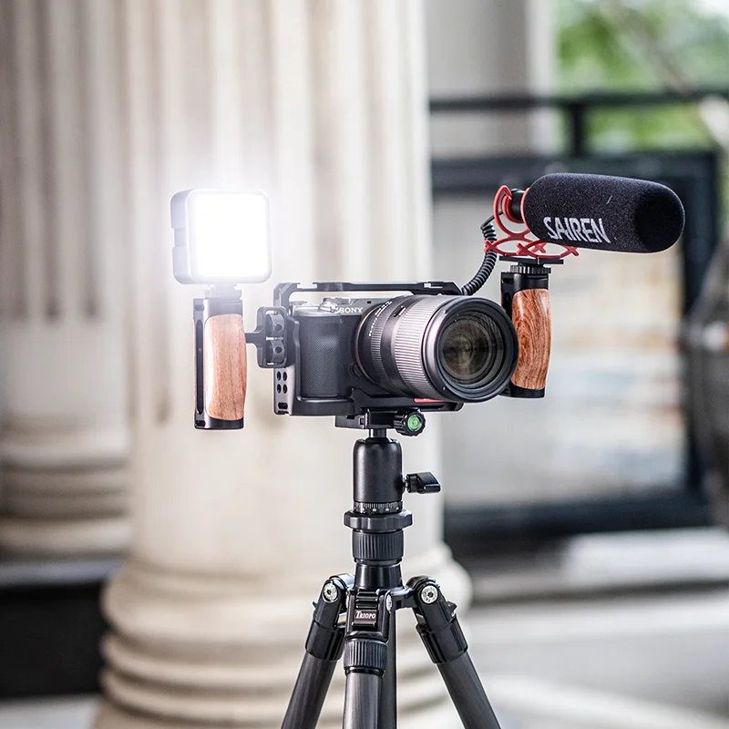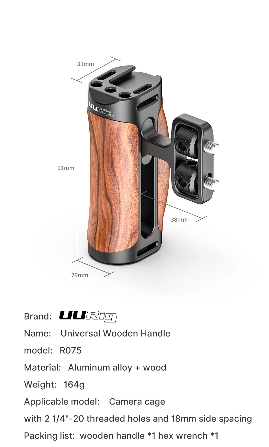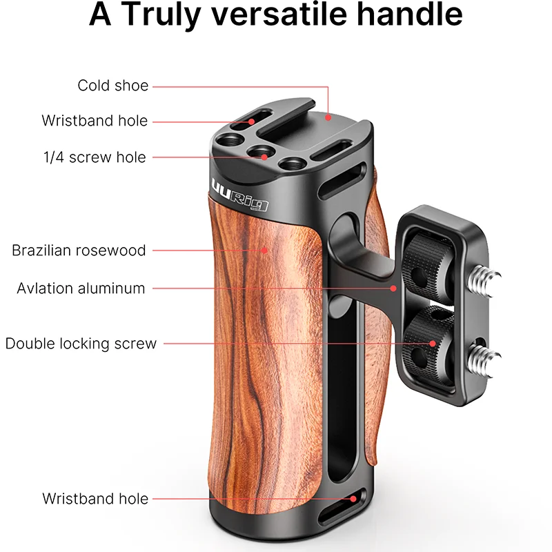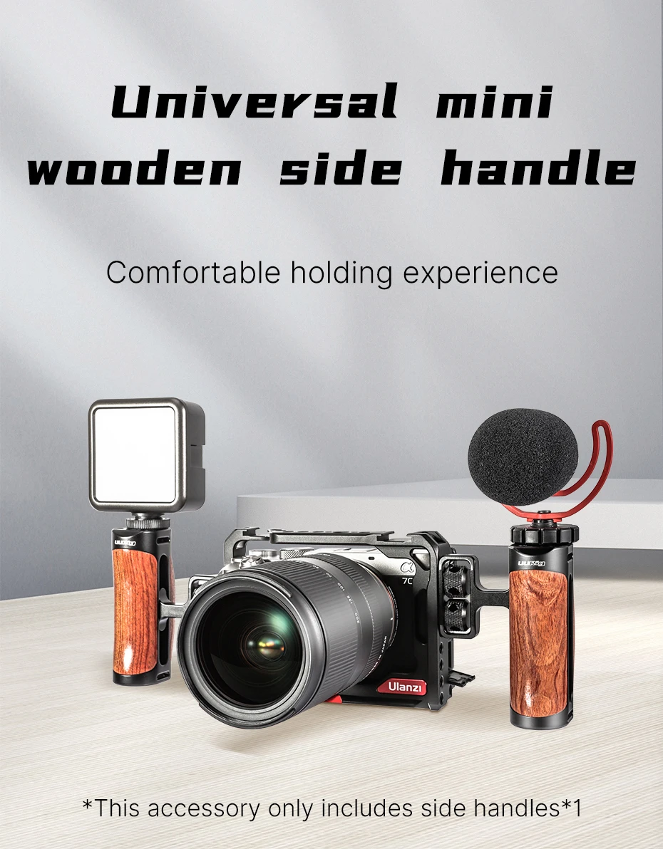 Comprar Ulanzi-mango de madera Universal para cámara de vídeo R075, montaje con zapata fría, 1/4, 3/8 agujeros de rosca, para Sony ZV1, A6600, A6400