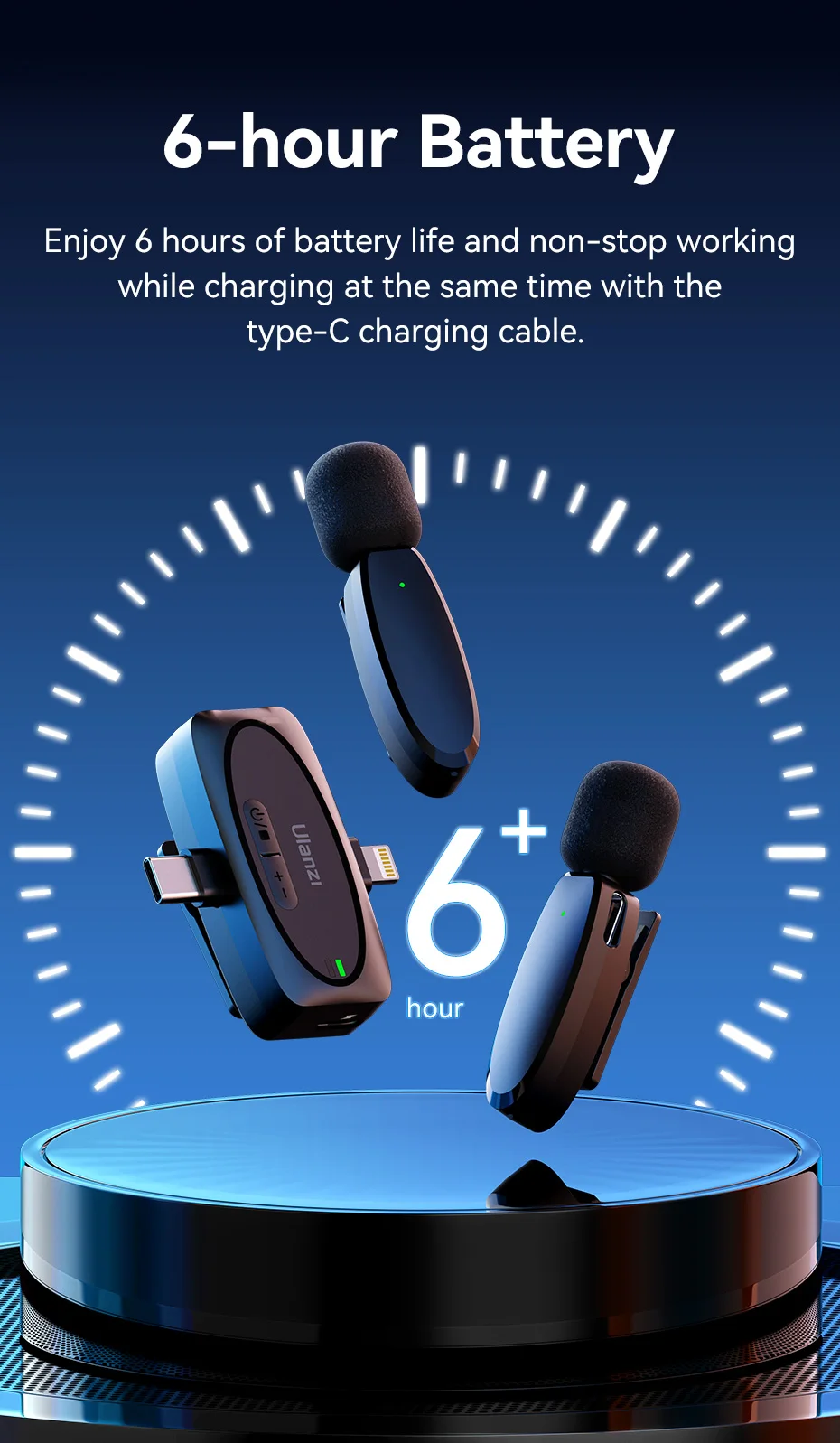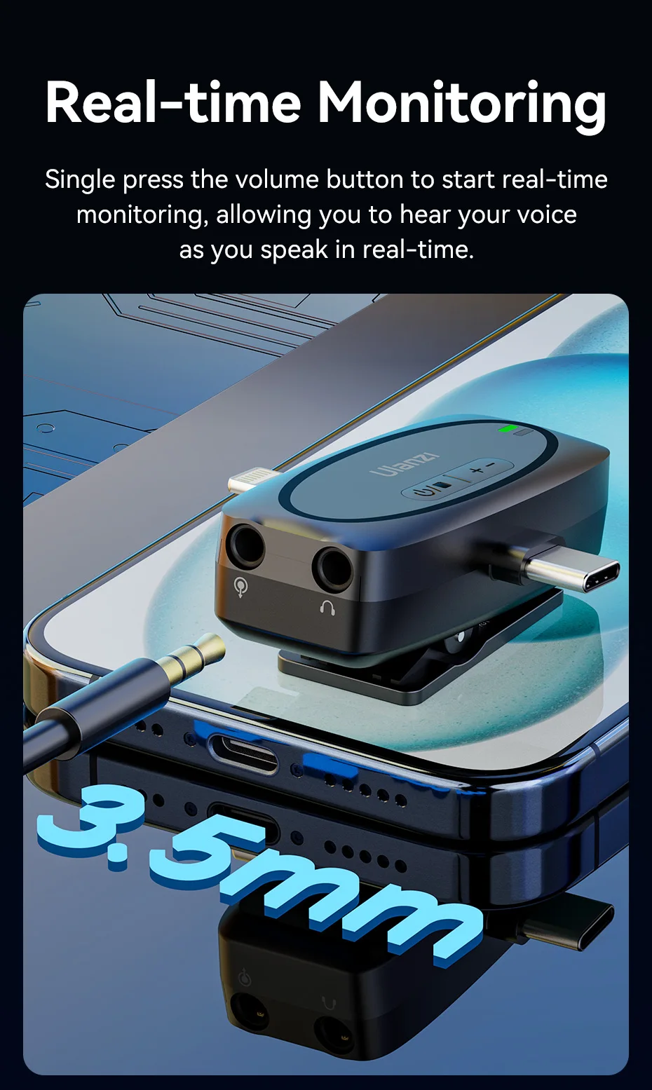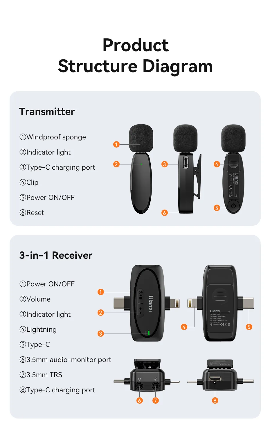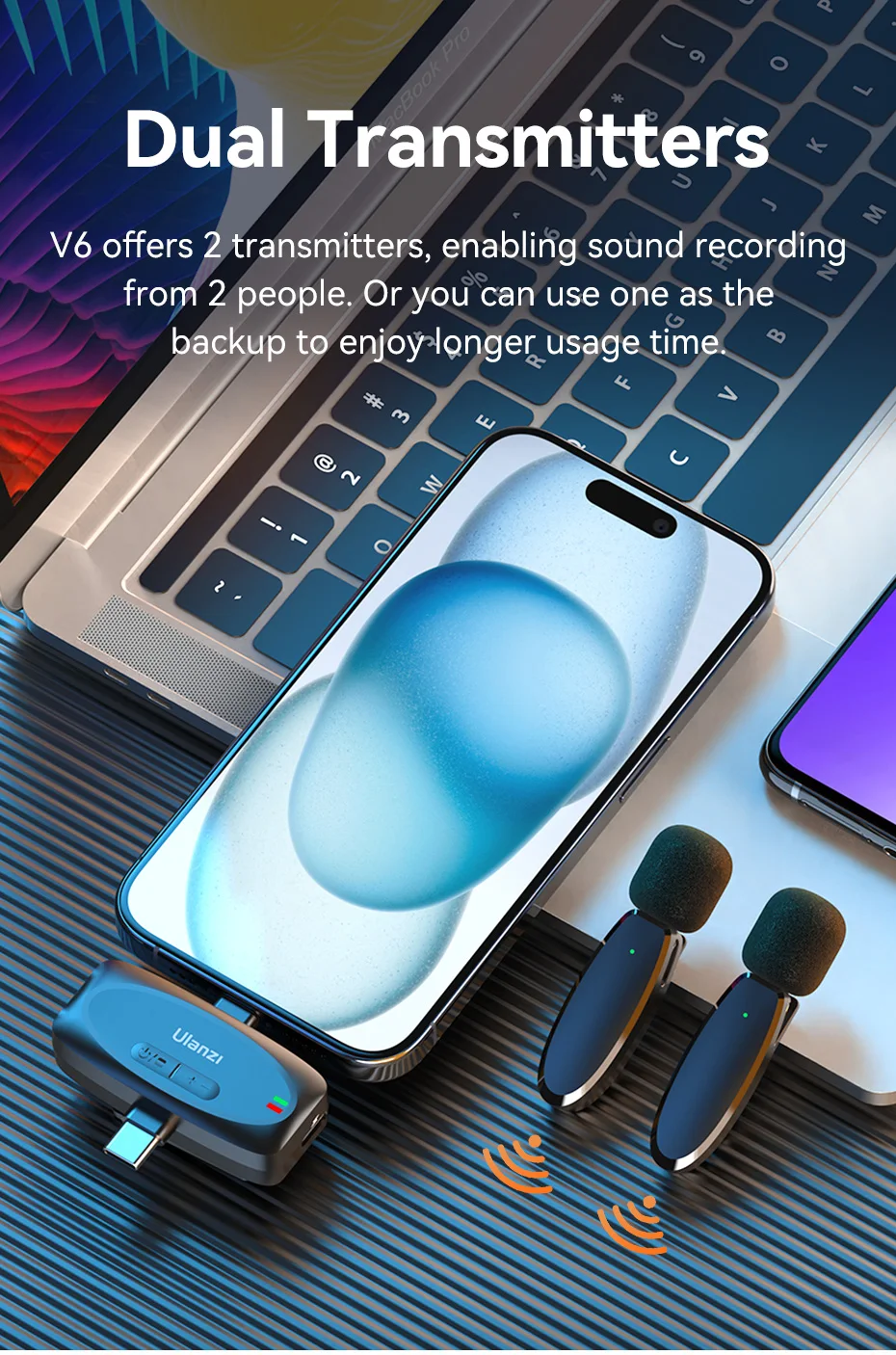 Ulanzi-Micrófono de solapa inalámbrico 3 en 1 V6 2,4G, conector Lightning tipo C, puertos de 3,5mm para iPhone 15, cámara DSLR Android, portátil, grabación de entrevista