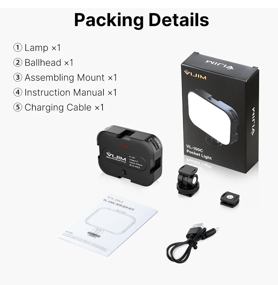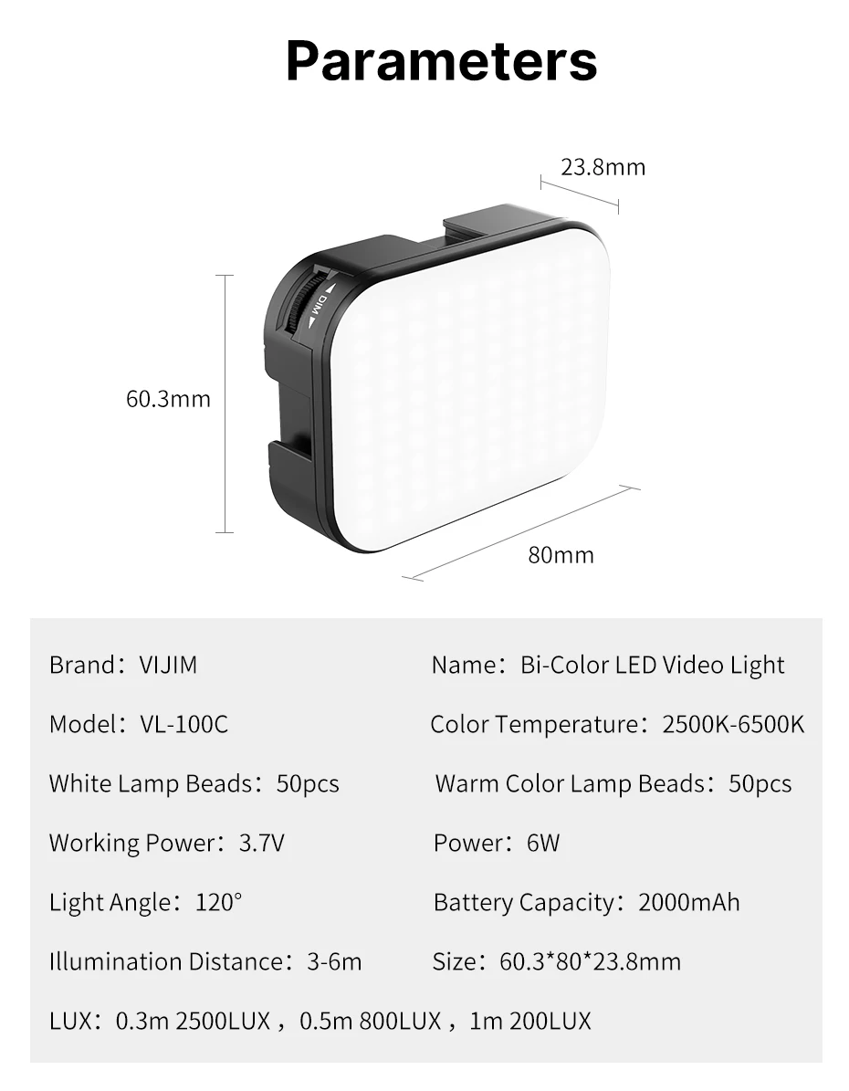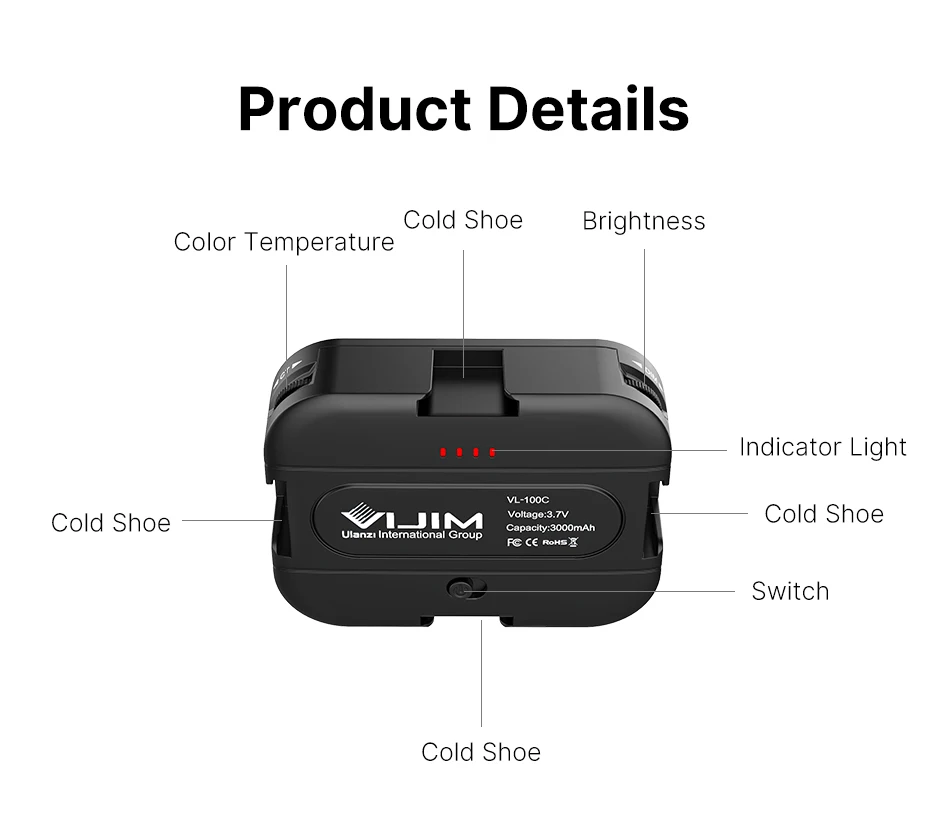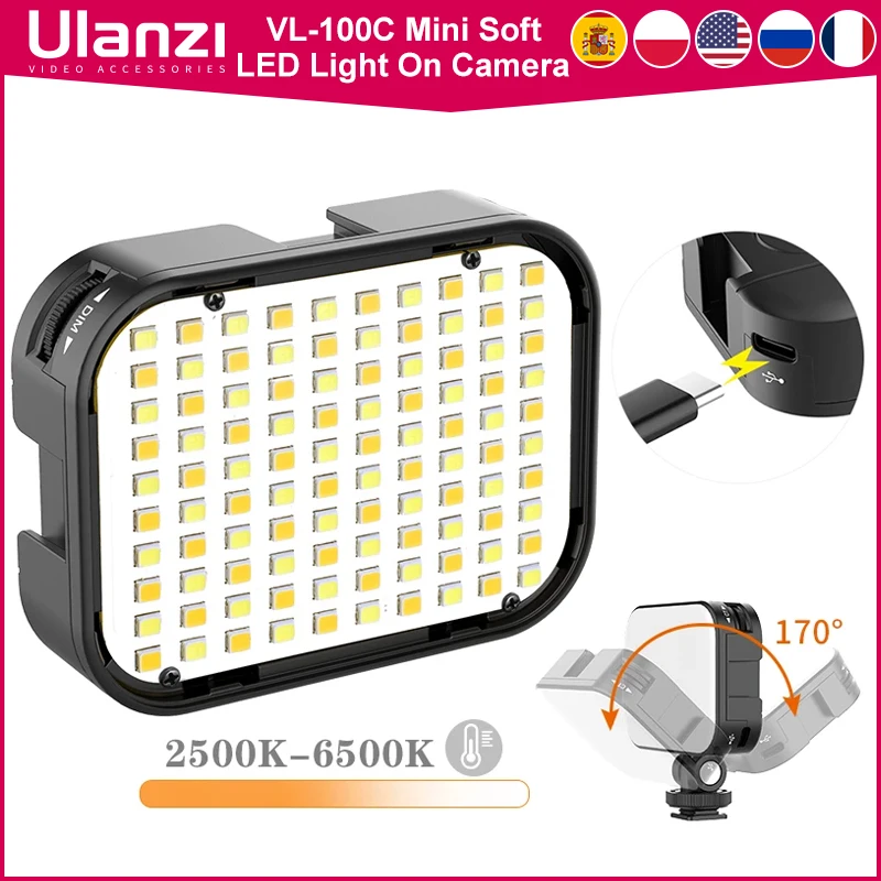 Comprar Ulanzi-Mini luz LED regulable para Vlog, lámpara de relleno de 2500K-6500K, Vijim VL-100C, regulable, en directo, Youtube