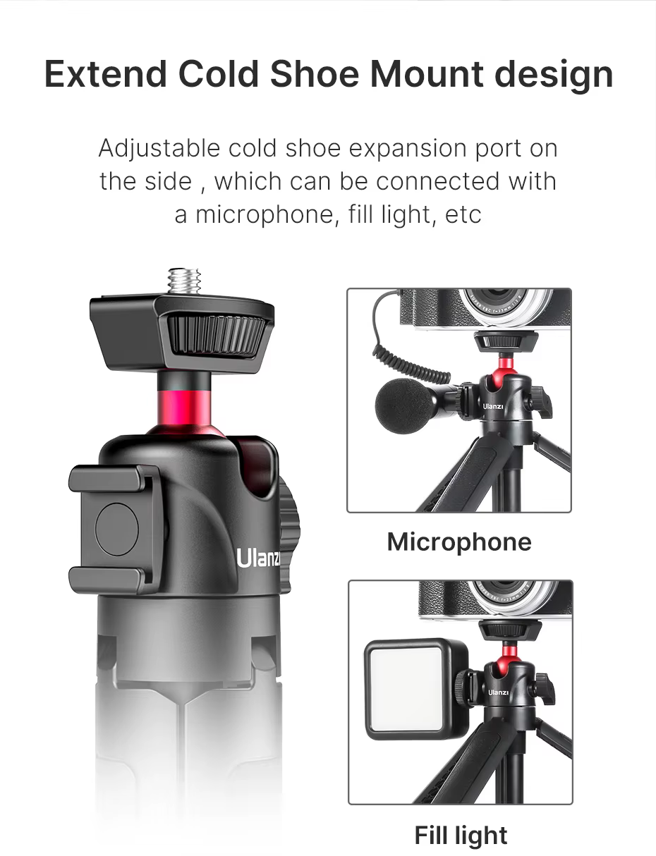 Ulanzi MT-16 trípode extensible para tableta con zapata fría para micrófono luz de relleno de vídeo LED trípode para cámara SLR de teléfono inteligente