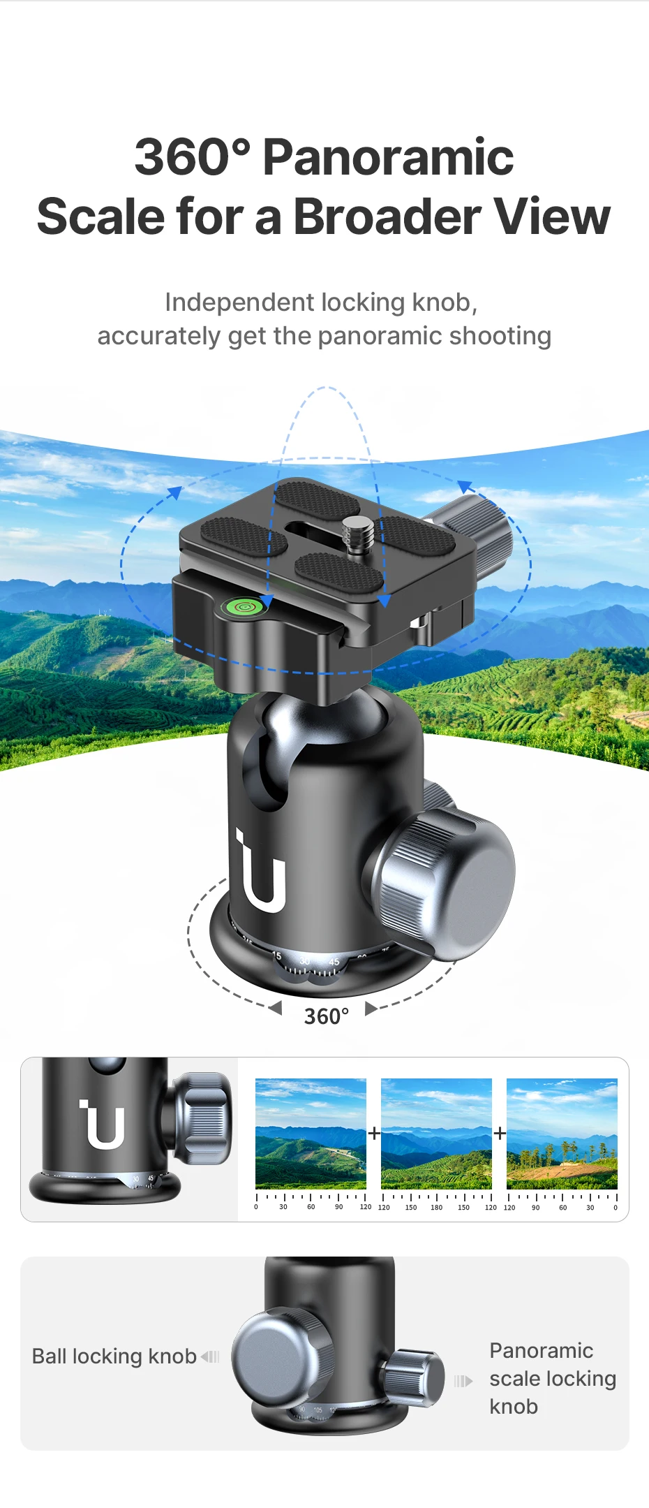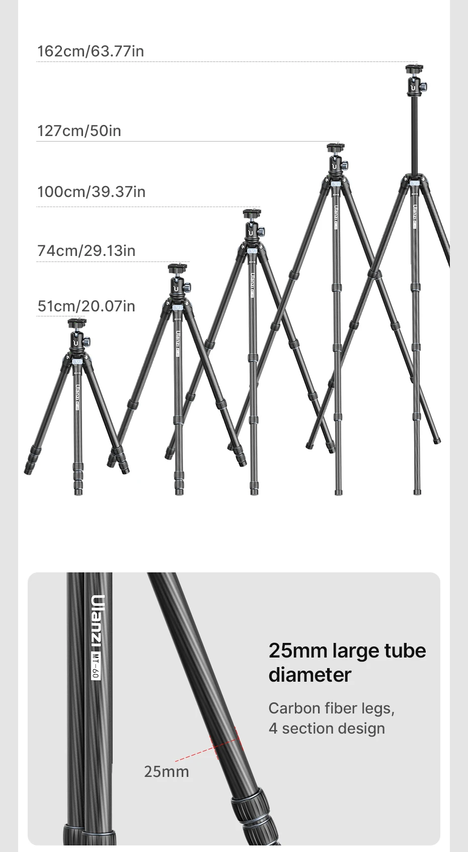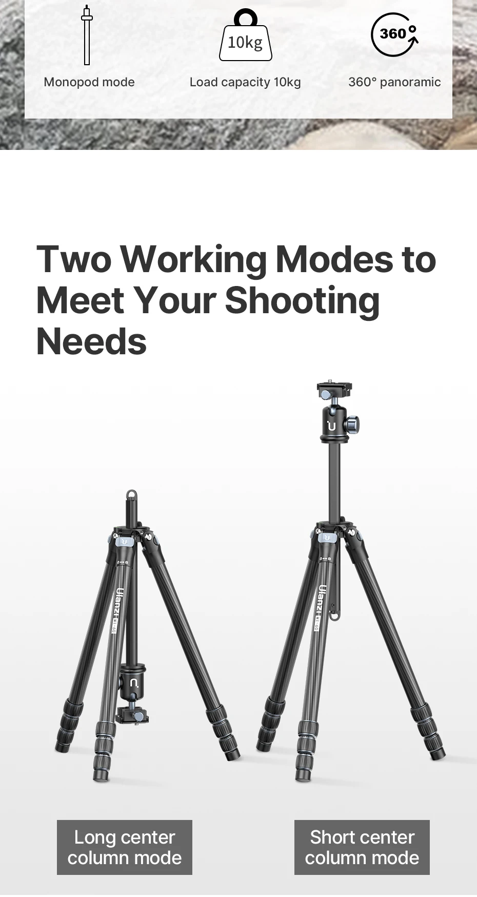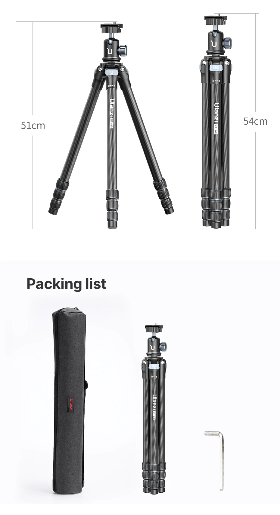 Ulanzi-Trípode de viaje portátil ligero de fibra de carbono de alta a 1,62 m con monopié de 360 ° cabeza esférica panorámica para fotografía de cámara DSLR