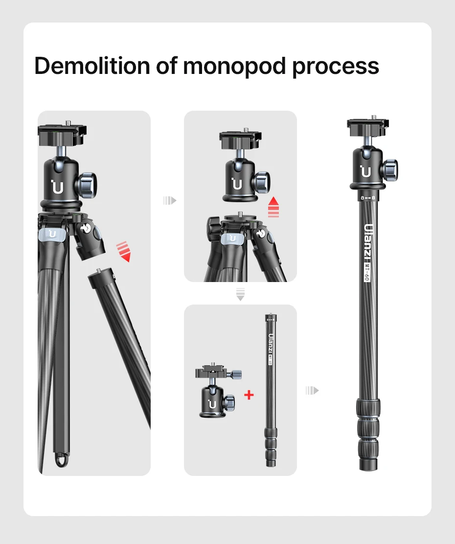 Comprar Ulanzi MT-60 Trípode de viaje portátil liviano de fibra de carbono de alto a 1,62 M con monopié 360 ° Cabezal de bola panorámico para cámara DSLR