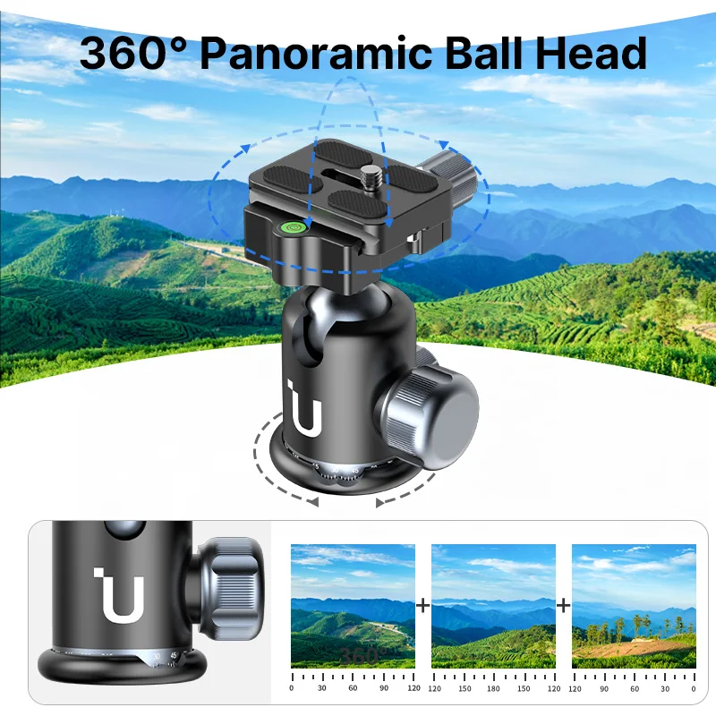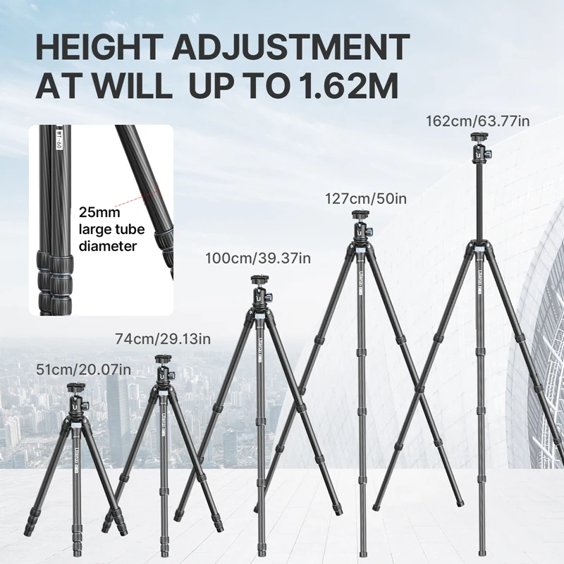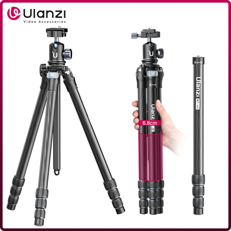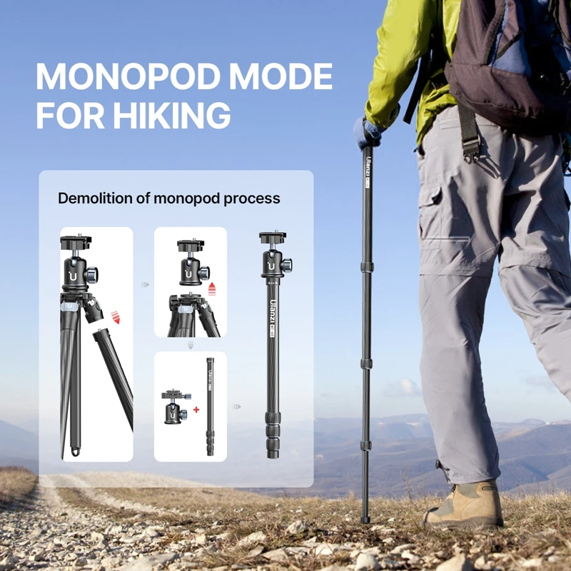 Ulanzi-Trípode de viaje portátil ligero de fibra de carbono de alta a 1,62 m con monopié de 360 ° cabeza esférica panorámica para fotografía de cámara DSLR