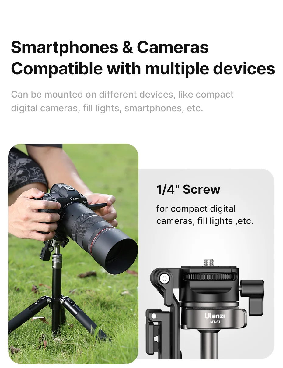 Comprar Ulanzi MT-63 aleación de aluminio portátil Mini trípode cámara Smartphone viajes al aire libre fotografía grabación de vídeo trípode monopié