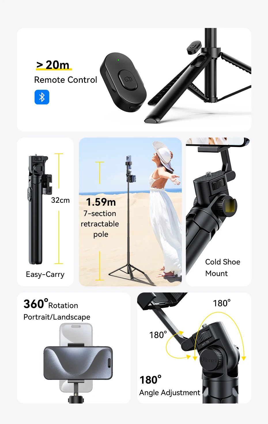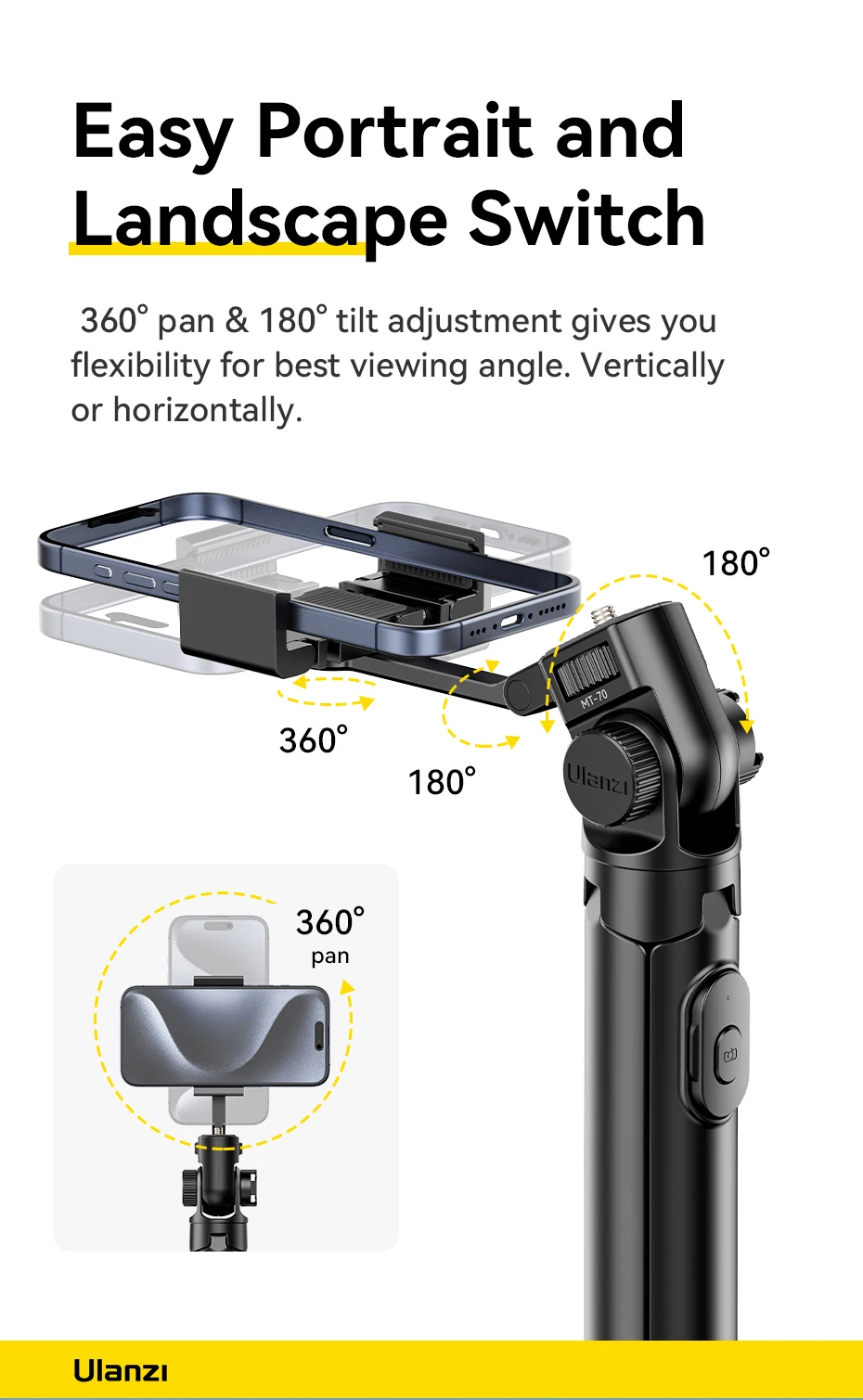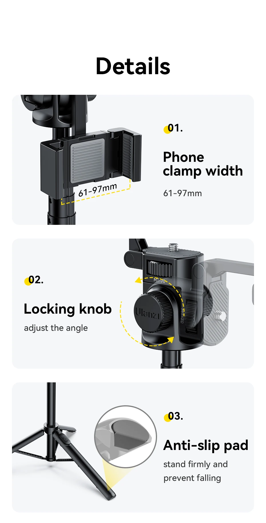 Comprar Ulanzi MT-70 trípode portátil con palo de Selfie para cámara de teléfono inteligente con dos clips para teléfono trípode para Selfie con Control remoto de tornillo de 1/4 pulgadas