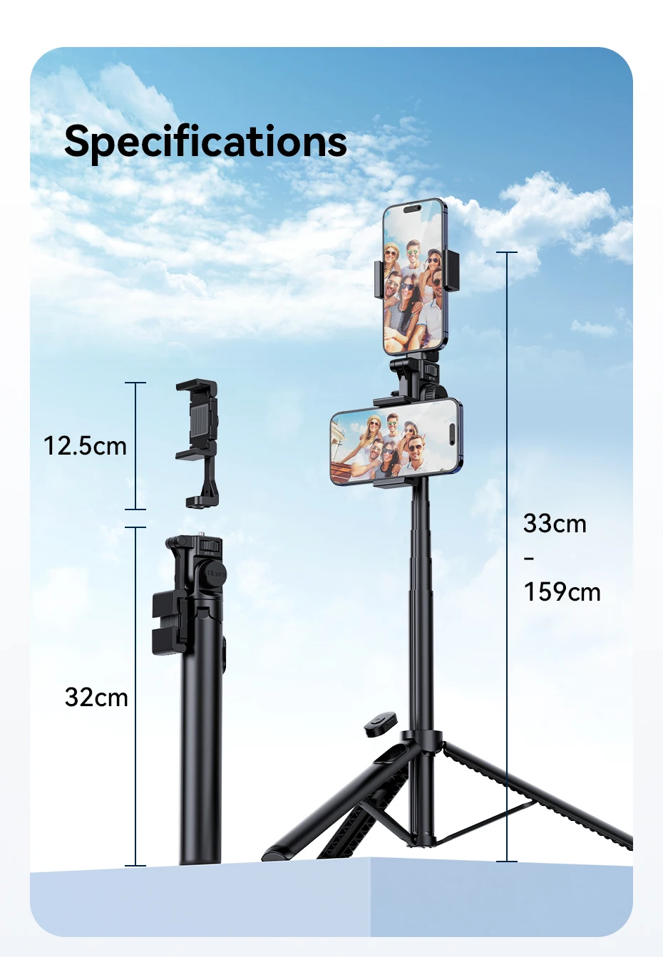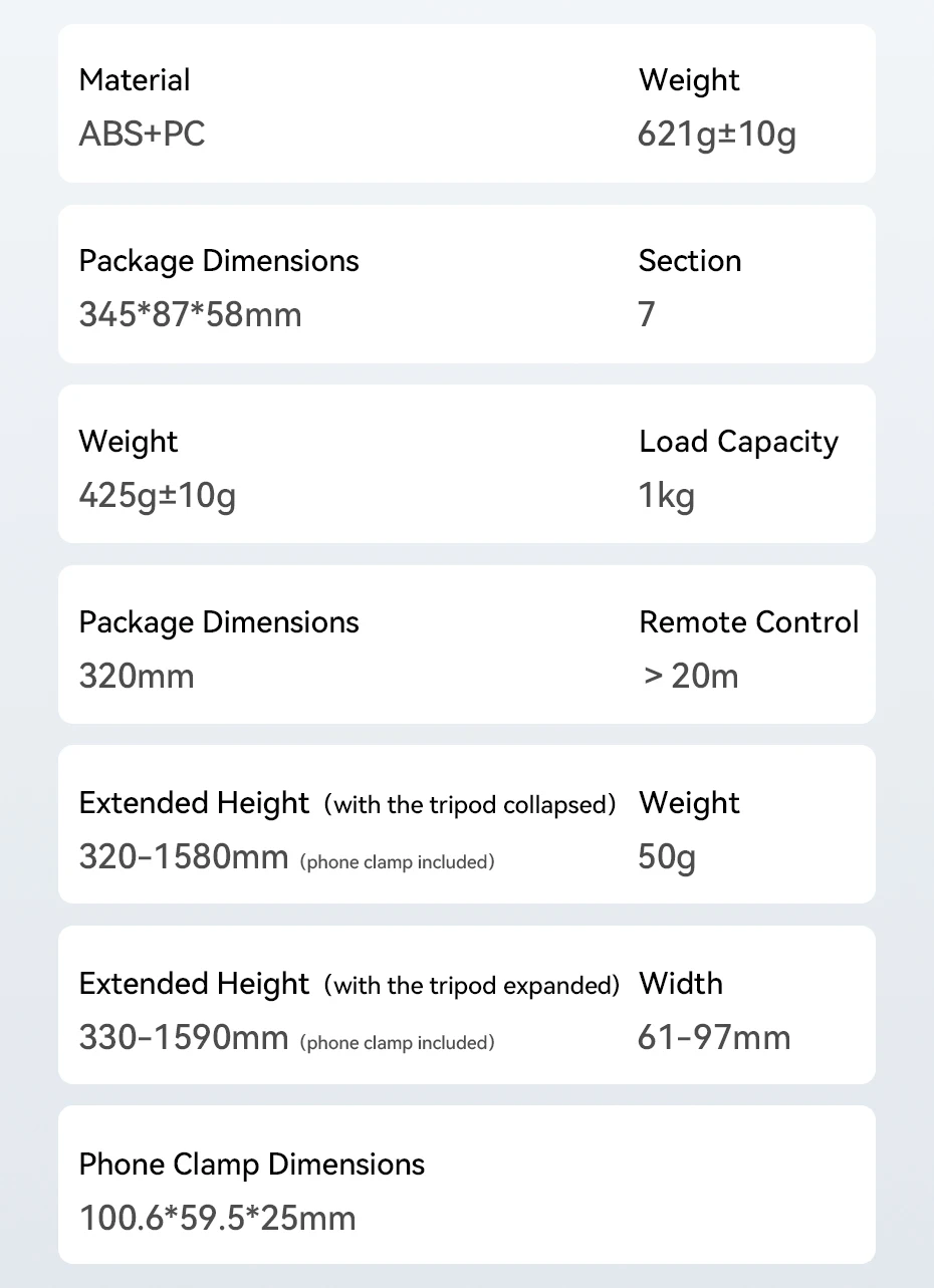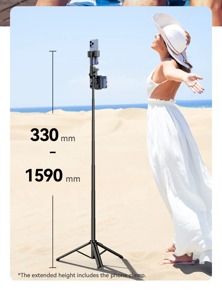 Longitud extendida (con trípode y clip para teléfono extendidos) 1,59 m