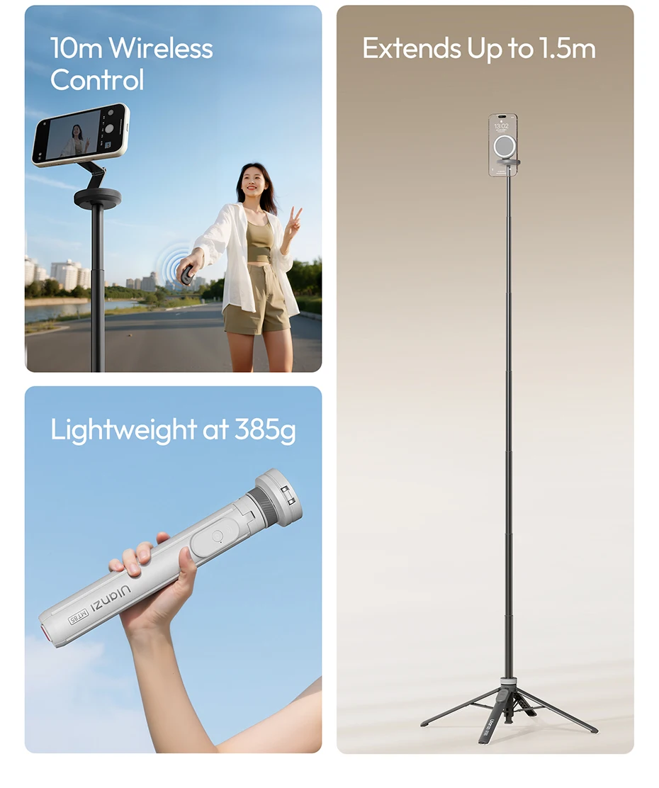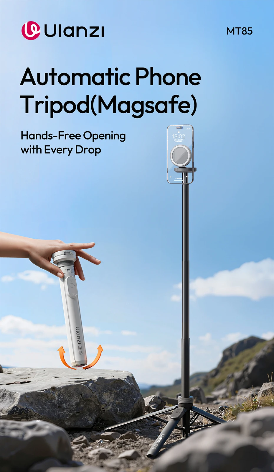 Ulanzi MT85 1.5M Actualización Magsafe Trípode de teléfono para Iphone 17 16 15 Android Trípode automático Selfie Stick con control remoto de 10M para teléfono inteligente Vlog Live