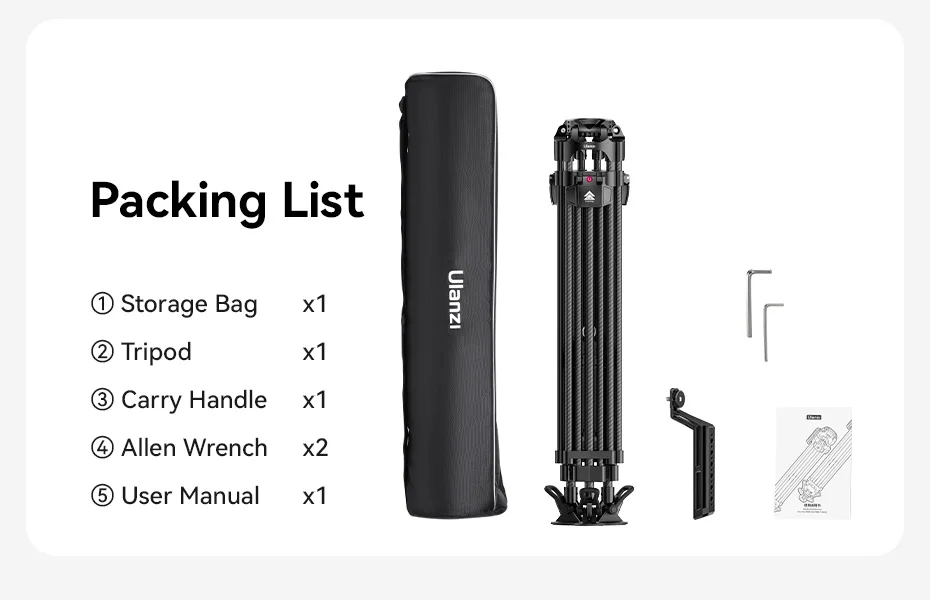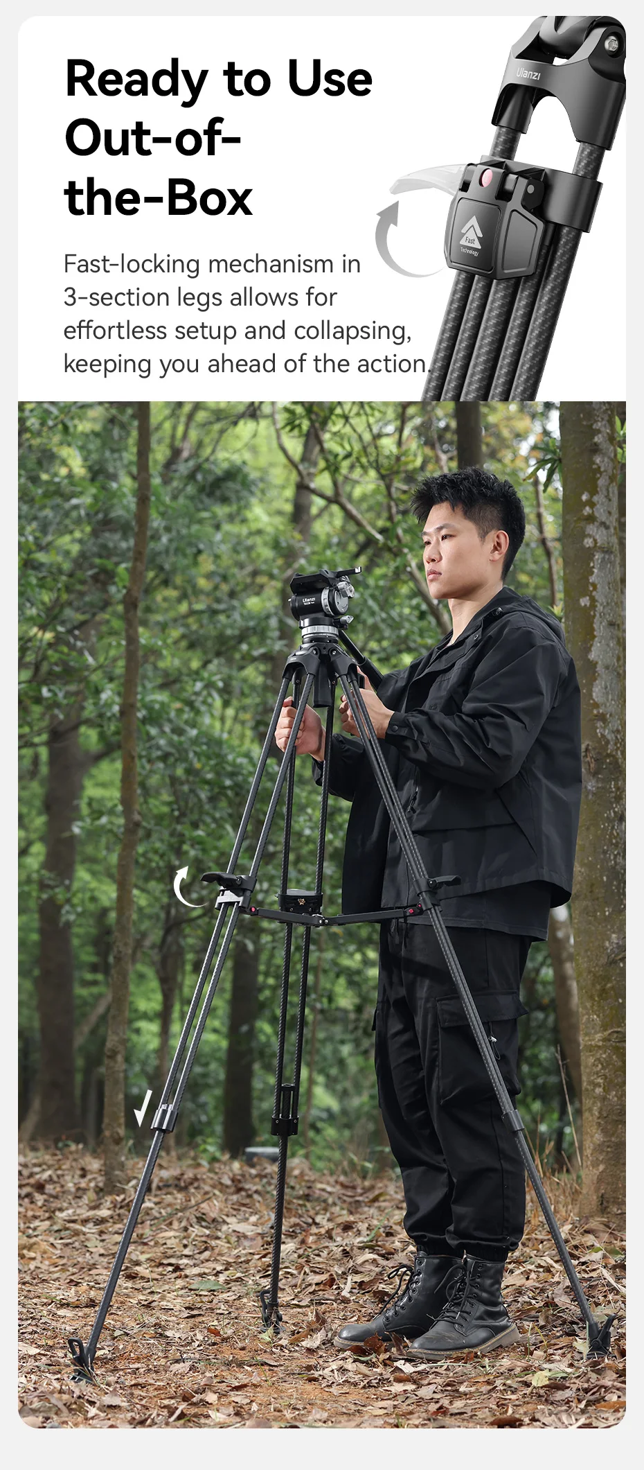 Ulanzi T047 VideoFast pata de trípode de fibra de carbono resistente