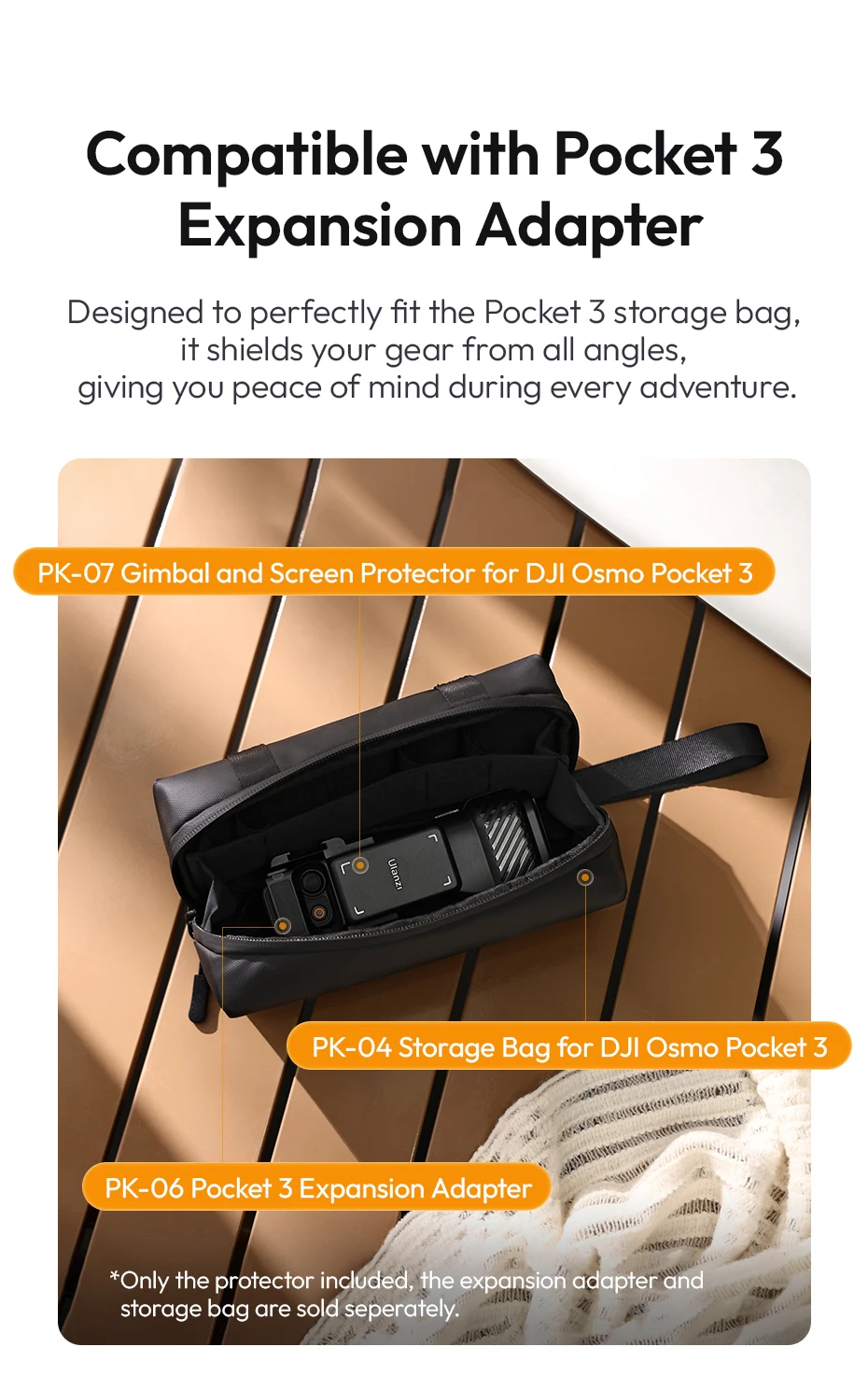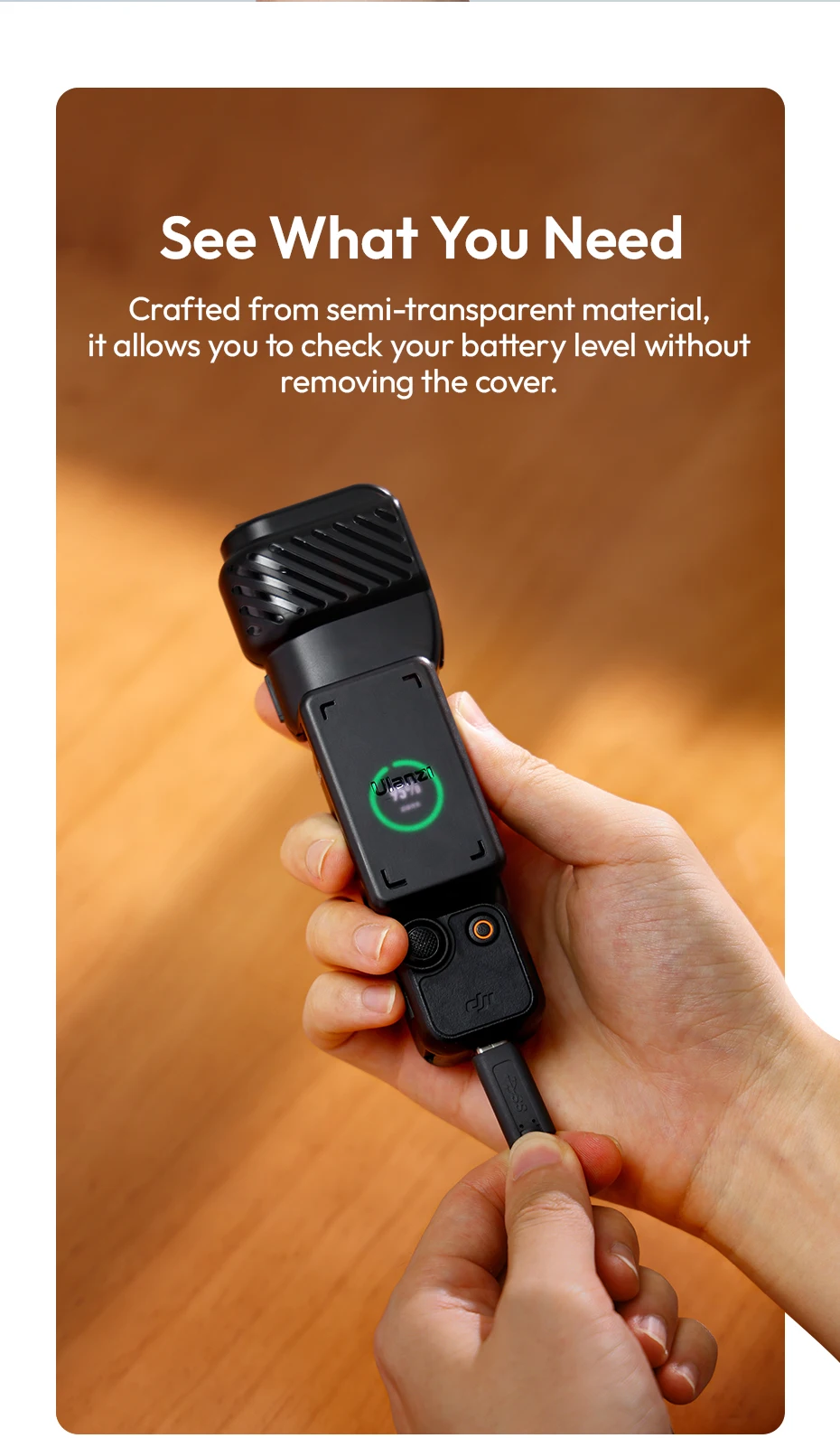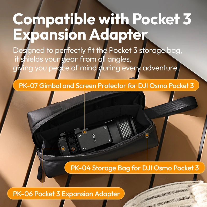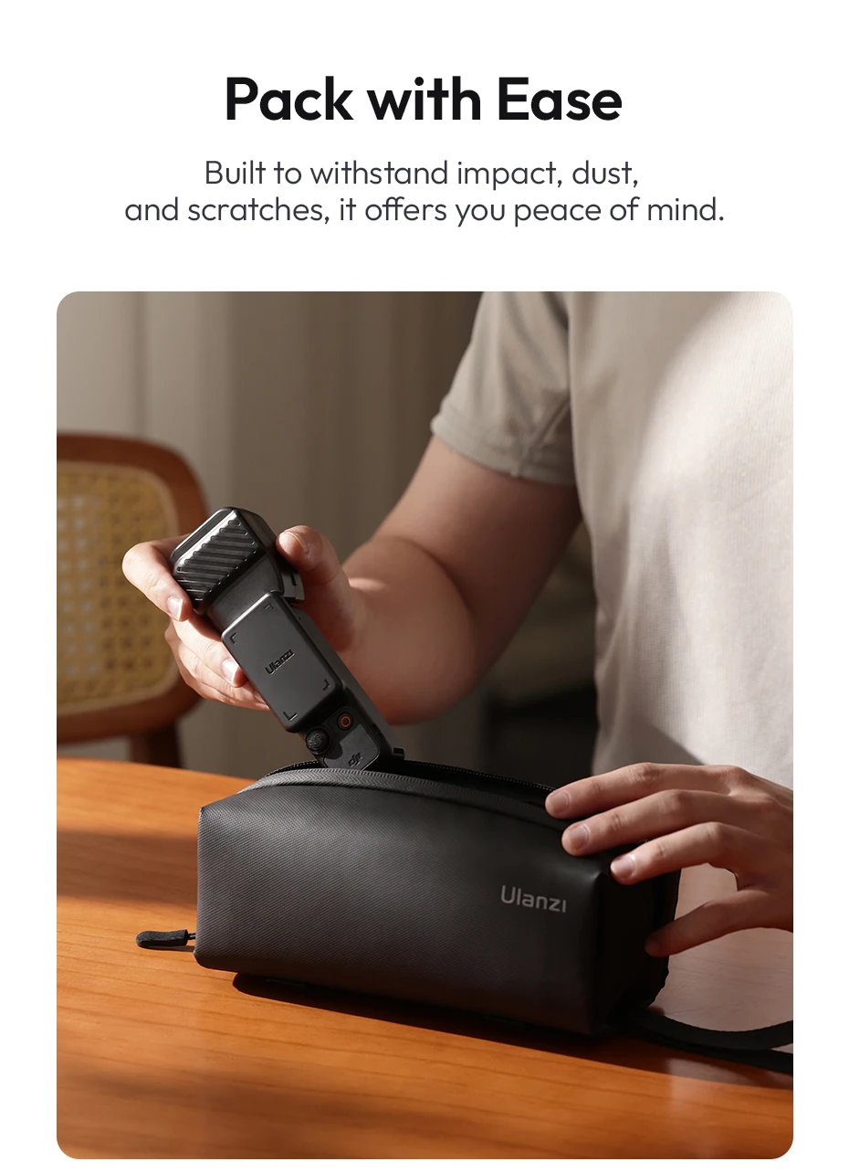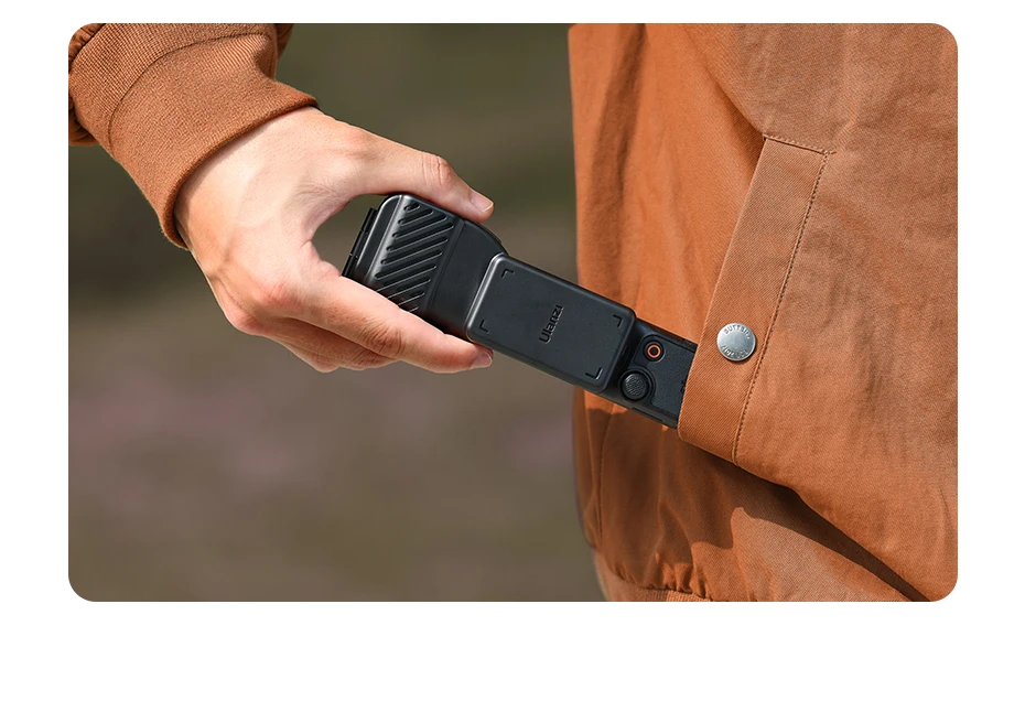 Parece más compacto y adecuado para usar en el bolsillo que el estuche original. En una bolsa, el botón de grabación sobresale, por lo que el gimbal puede moverse solo.