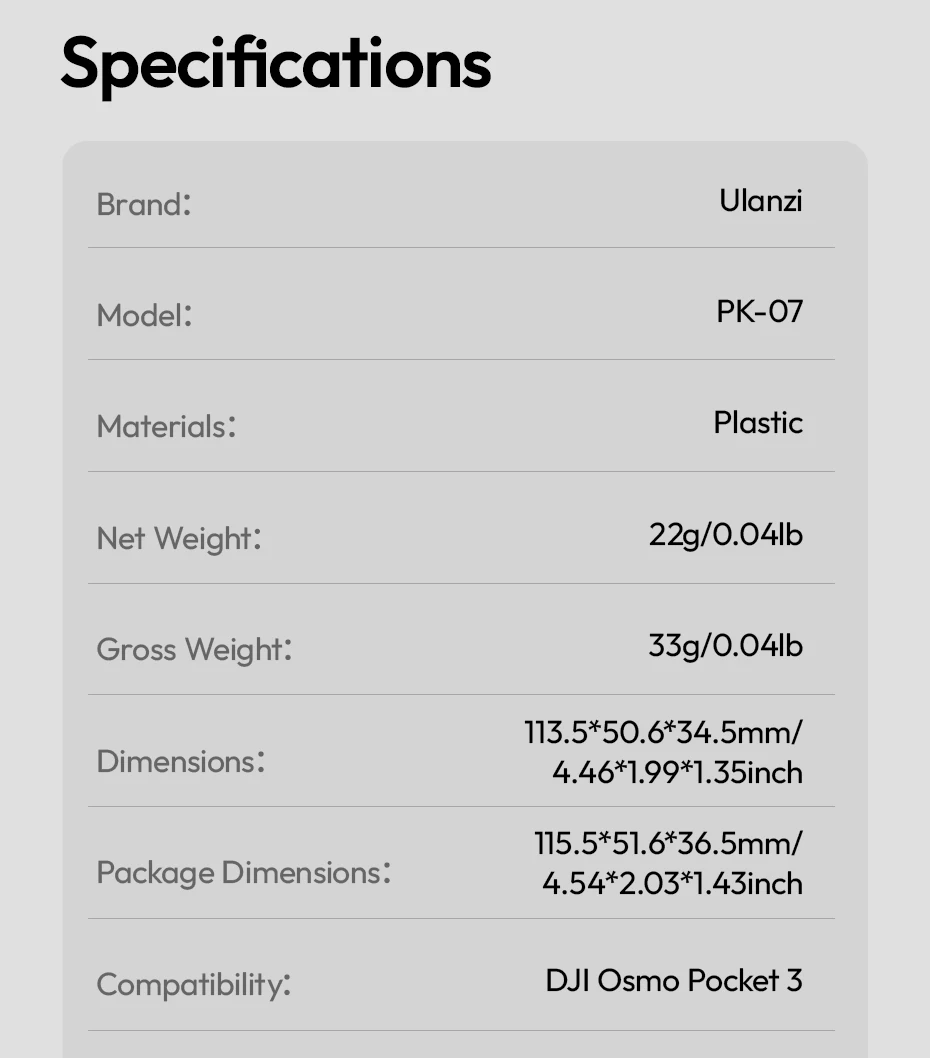 No me gustó la calidad de este producto. Me encanta Ulanzi, pero este producto era de plástico de baja calidad.
