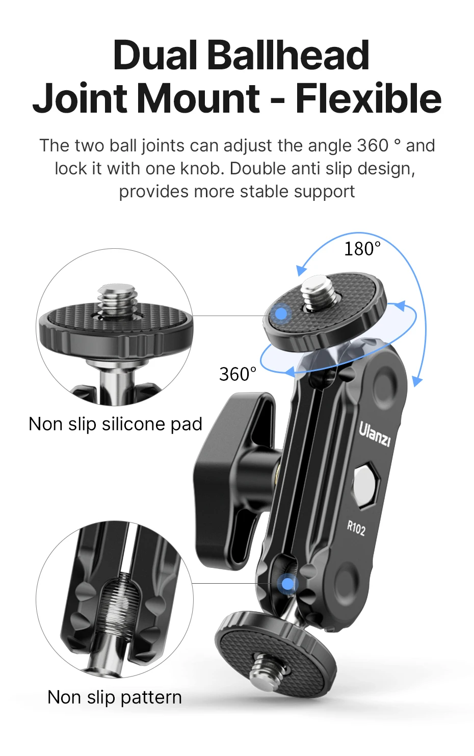 Cabezales de bola dobles de metal Ulanzi R102 con tornillo de 1/4''