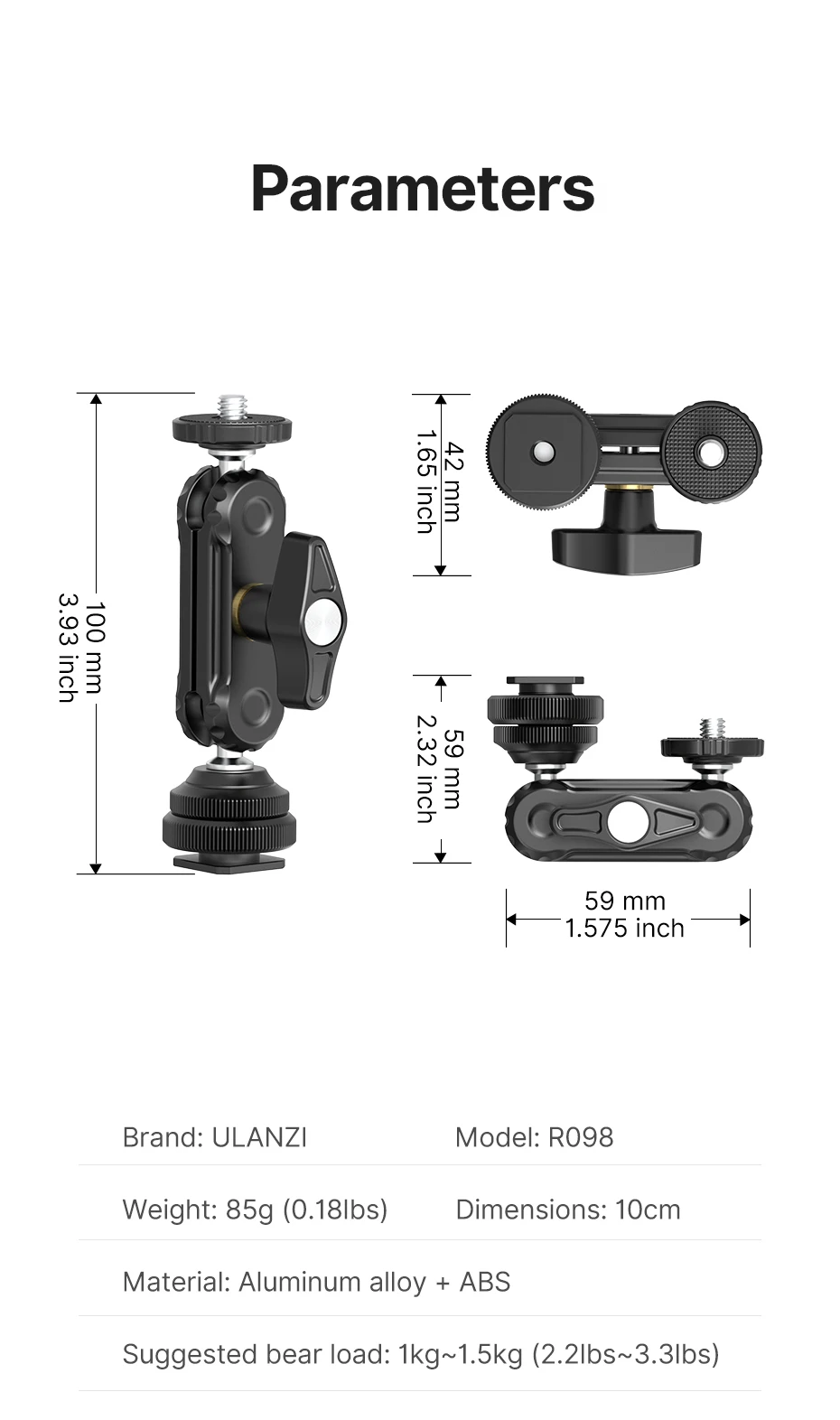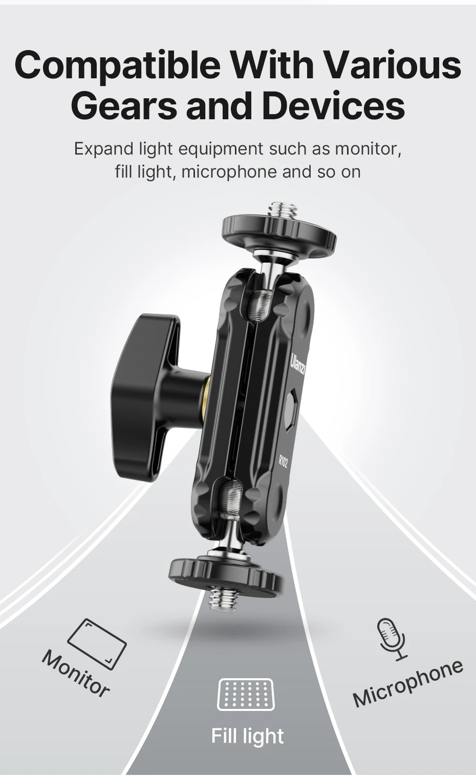 Compatible con varios engranajes y dispositivos: tornillo de 1/4 "para monitor, luz de relleno, micrófono, etc.
