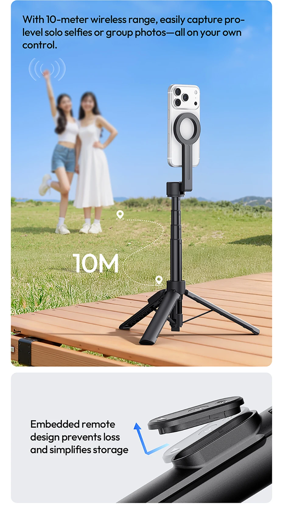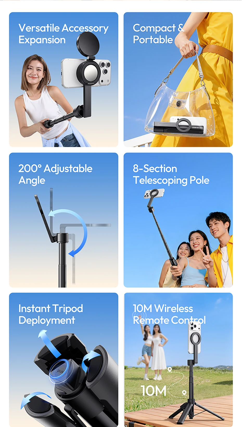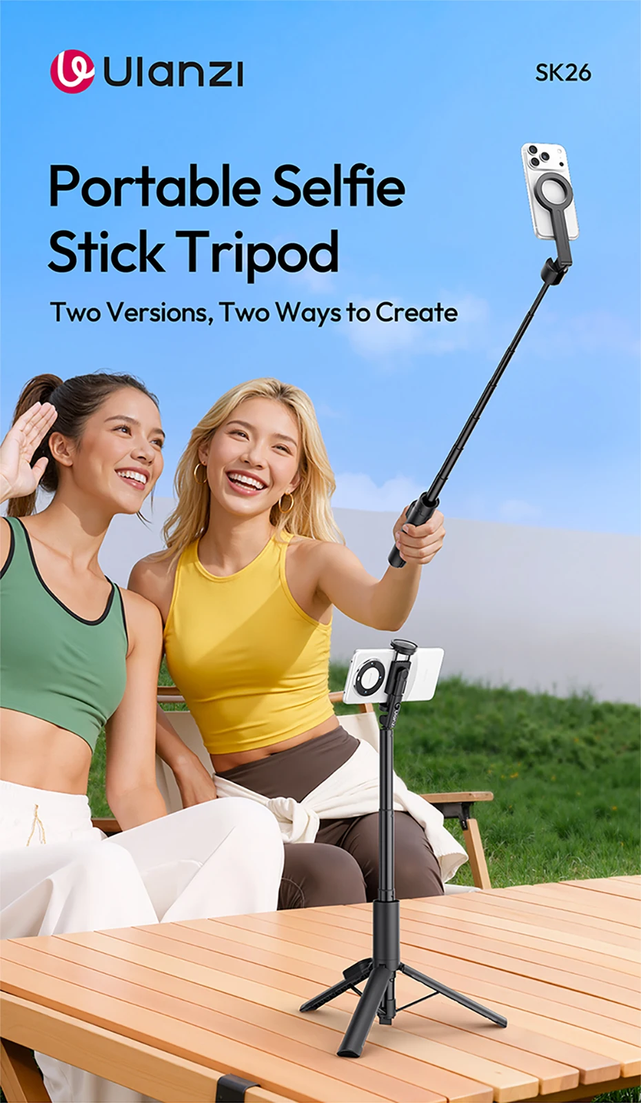 Ulanzi SK26 trípode portátil para Selfie, trípode magnético para teléfono, soporte para Iphone 17 16, Android, 10M, Control remoto 200 ° Ajustable