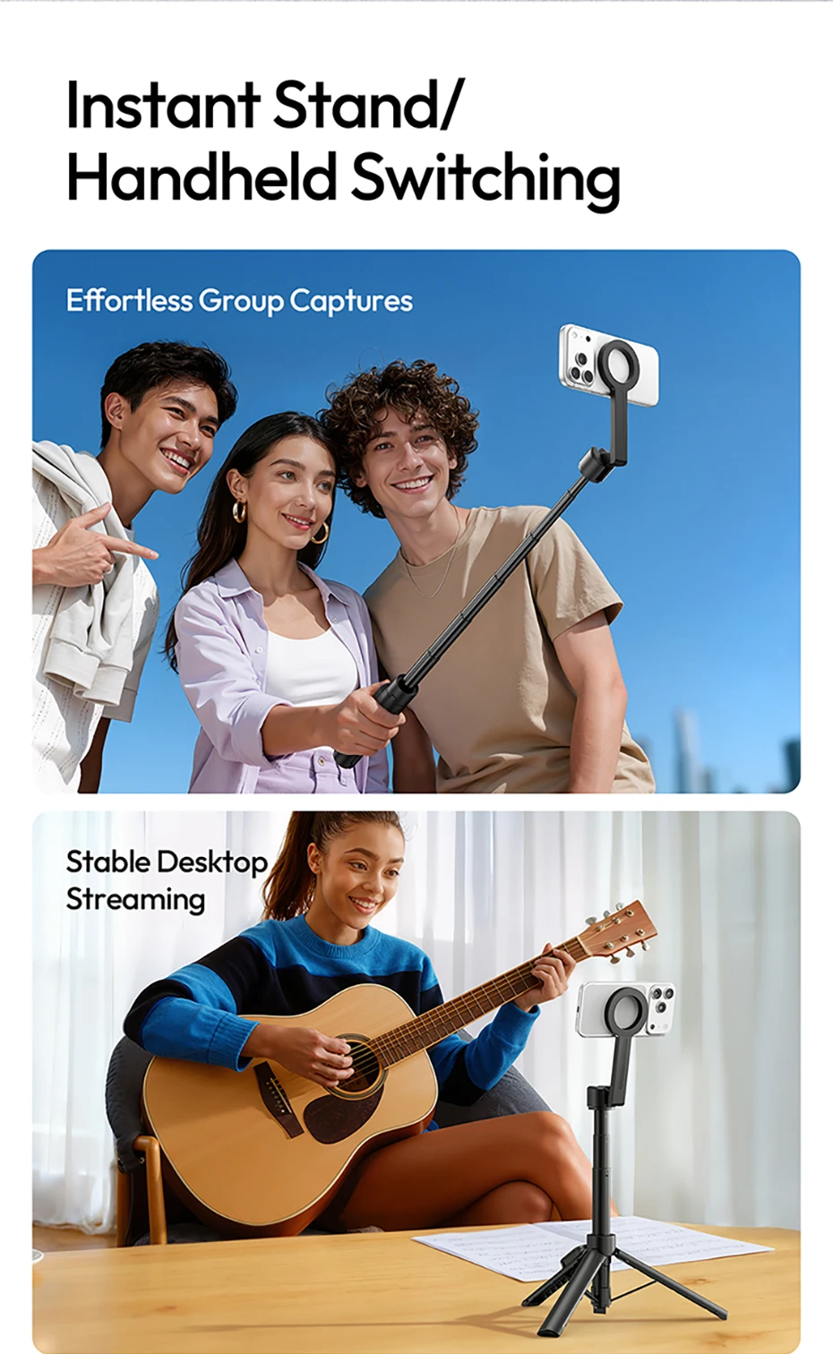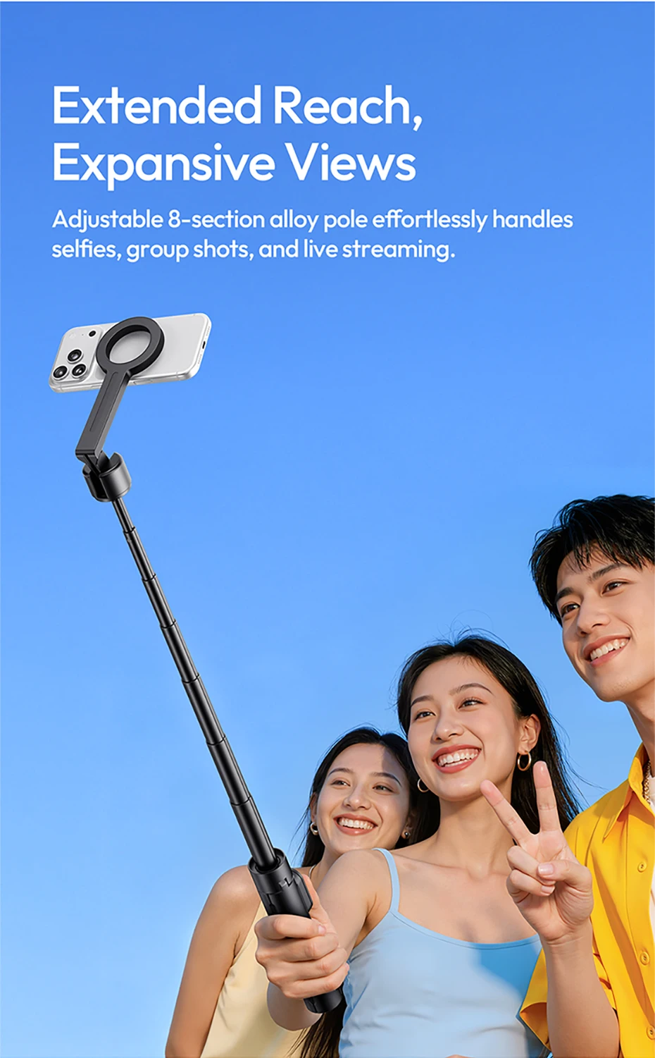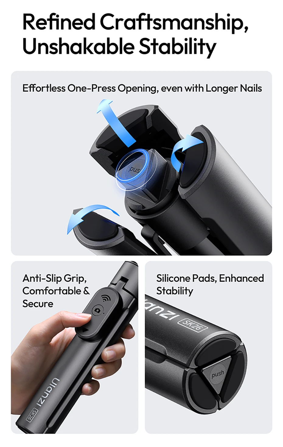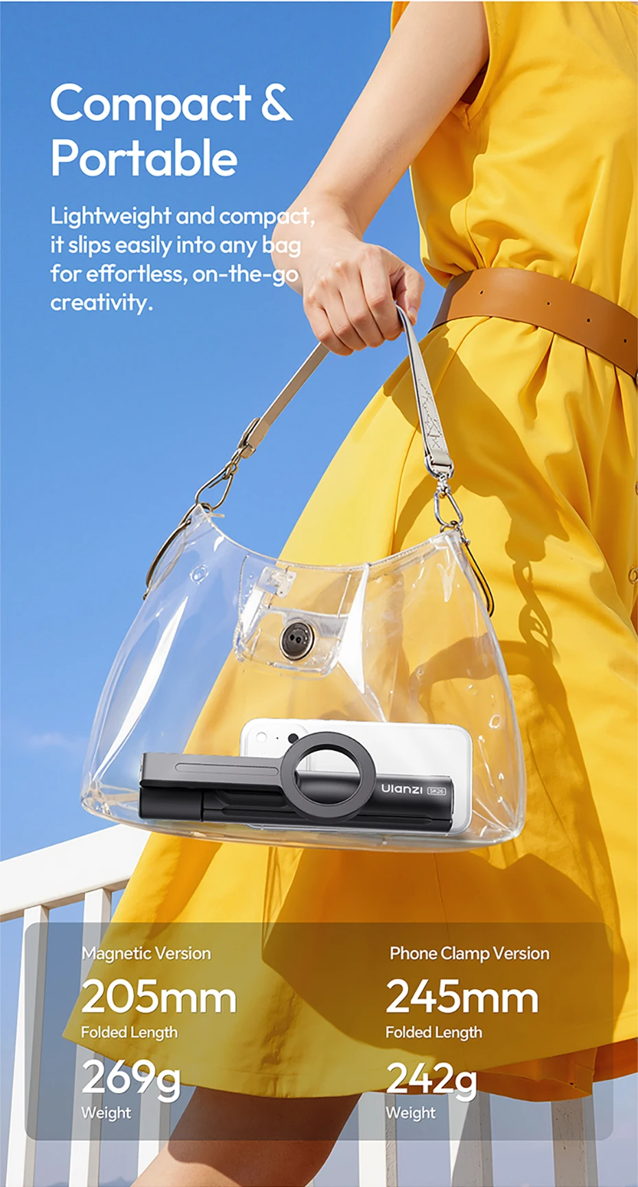 Ulanzi SK26 trípode portátil para Selfie, trípode magnético para teléfono, soporte para Iphone 17 16, Android, 10M, Control remoto 200 ° Ajustable