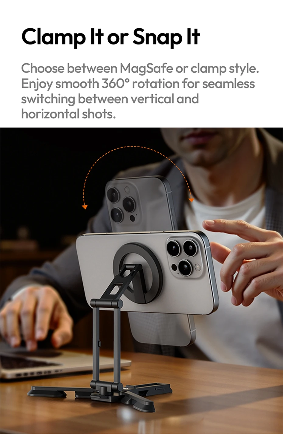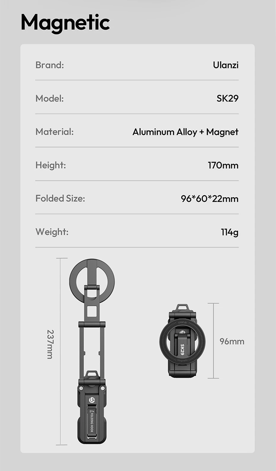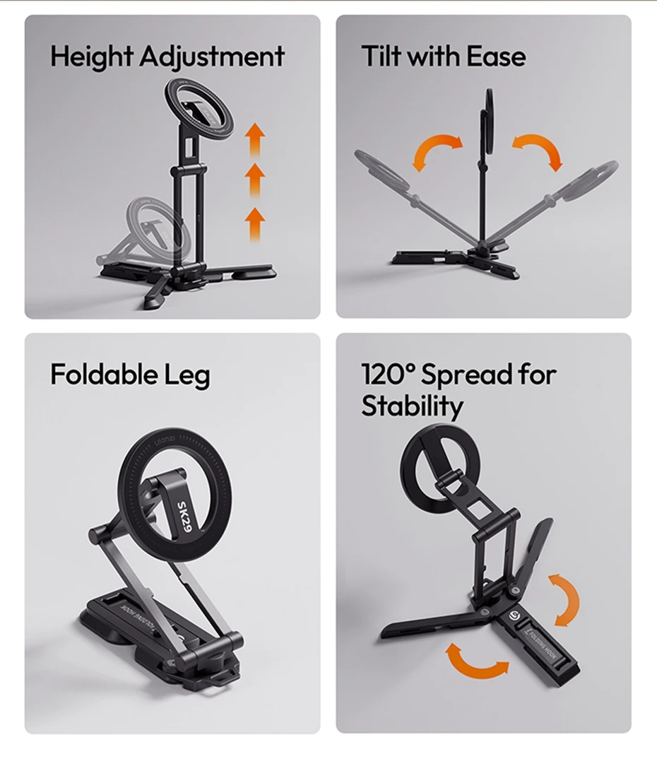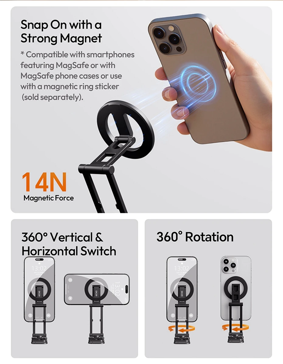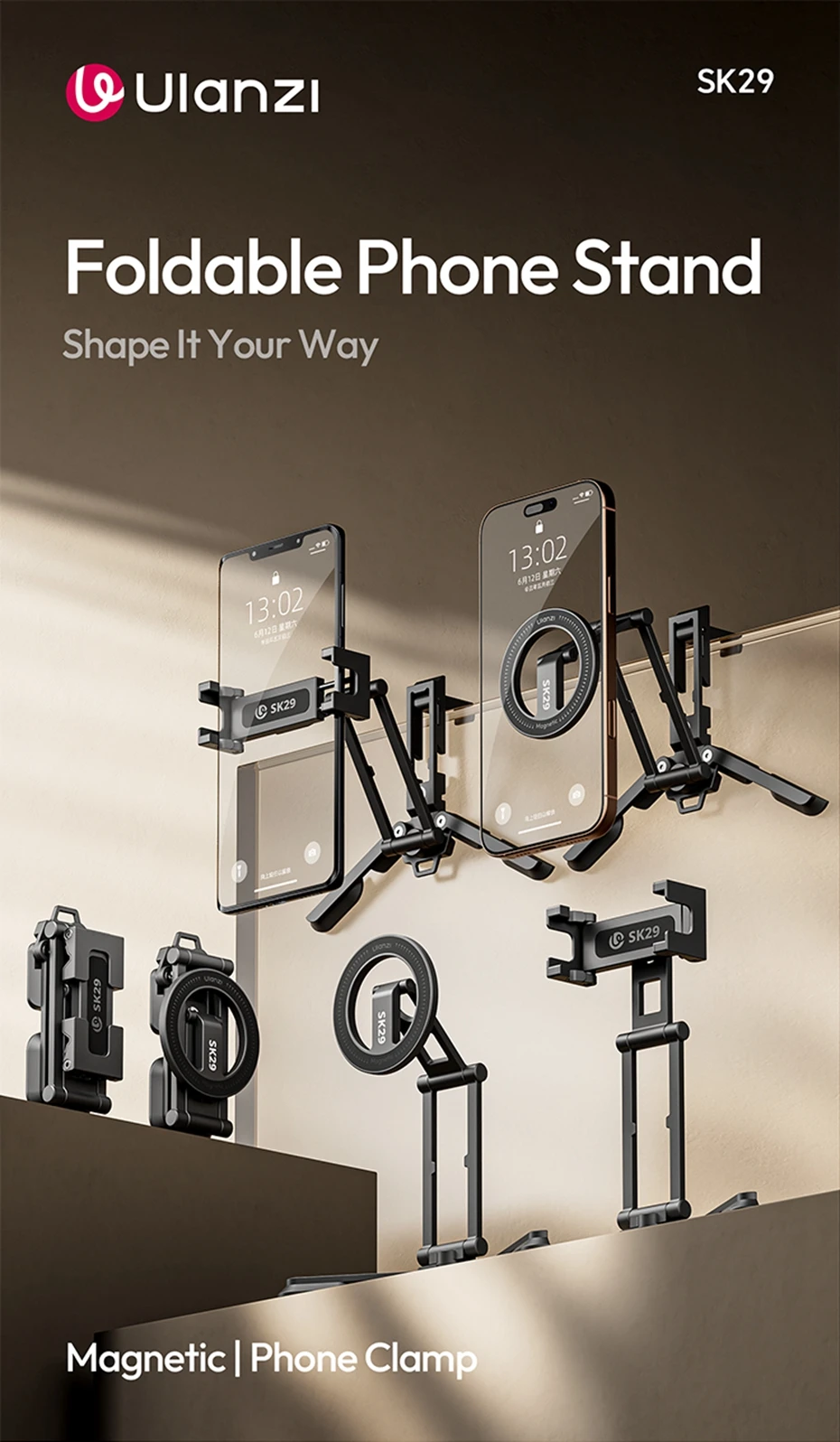 Ulanzi SK29 soporte plegable para teléfono magnético/abrazadera para teléfono para Vlog Live Selfie Stick soporte de escritorio trípode 360 ° rotación