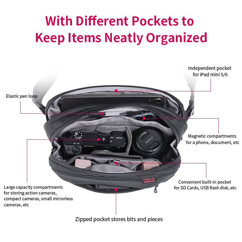 Mochila cruzada compacta Ulanzi Sling, bolso de día, Traker impermeable, bolsa de viaje para el pecho, bolsa informal para llevar fotografía, deporte de senderismo