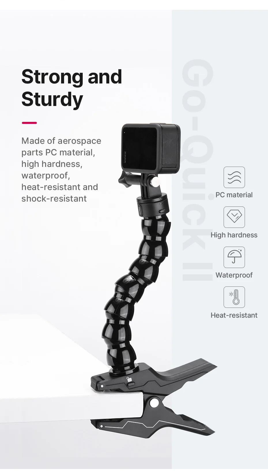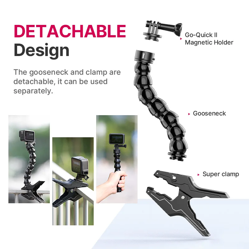 Comprar Ulanzi-soporte de brazo Flexible para cámara de acción Go Quick II, adaptador de montaje para GoPro Hero 12/11/10/9/8/7/6/5/4, color negro