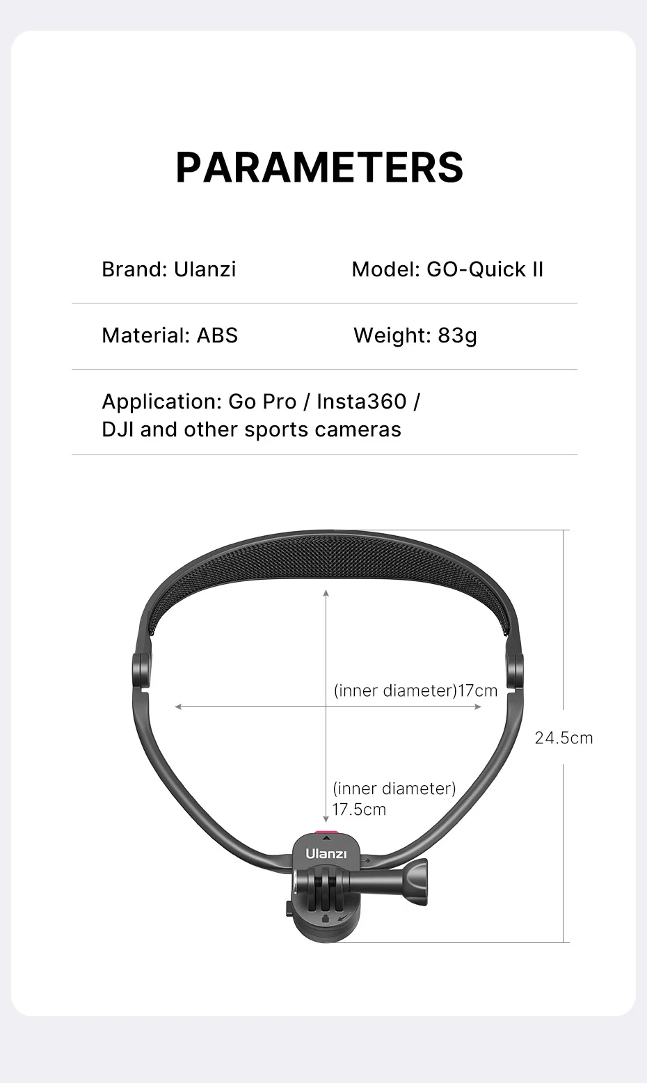 Comprar Ulanzi-Soporte de cuello Go-quick II para GoPro Hero 11, 10, 9, 8 Max, 7, 6, 5, insta360, Eken, vista en primera persona, accesorios magnéticos para Vlog