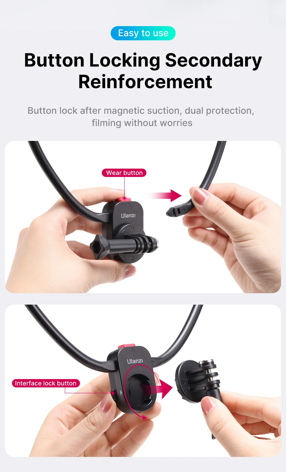 Ulanzi-Soporte de cuello Go-quick II para GoPro Hero 11, 10, 9, 8 Max, 7, 6, 5, insta360, Eken, vista en primera persona, accesorios magnéticos para Vlog