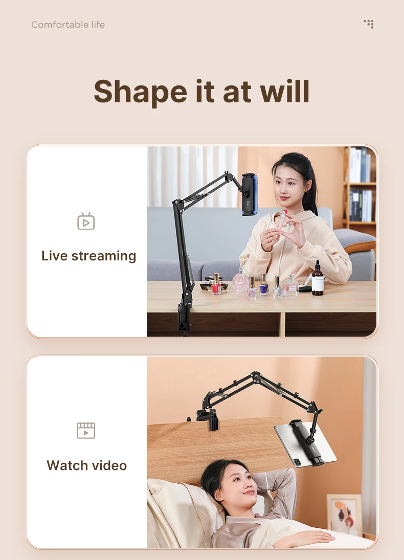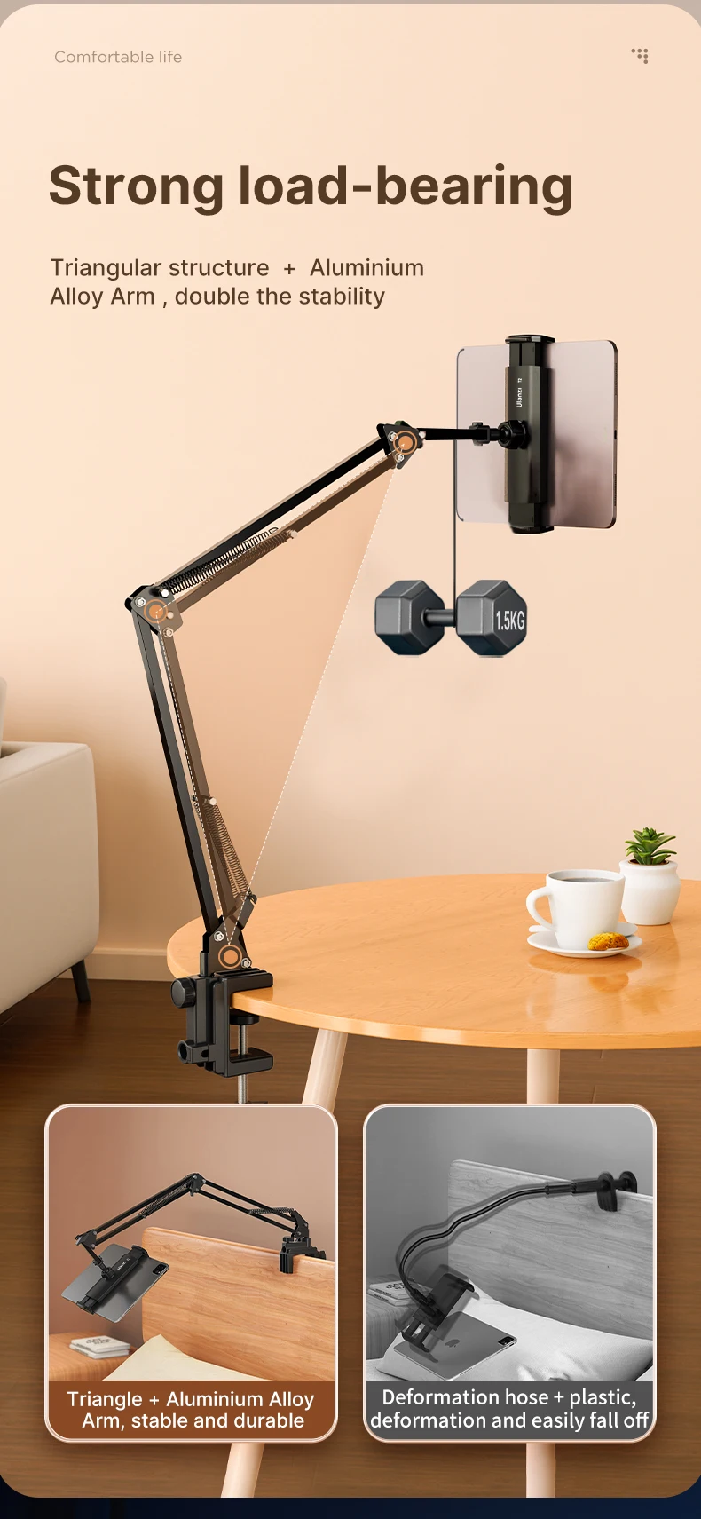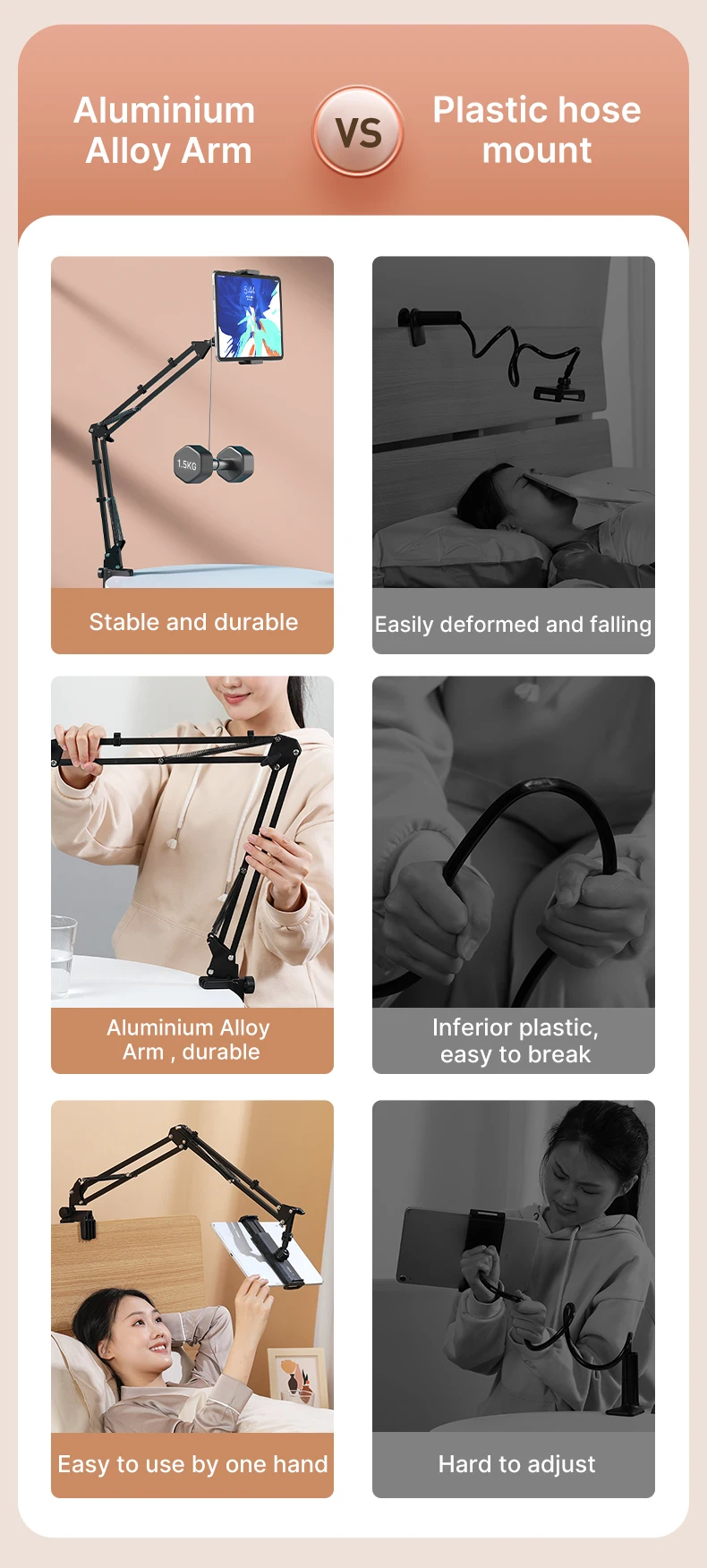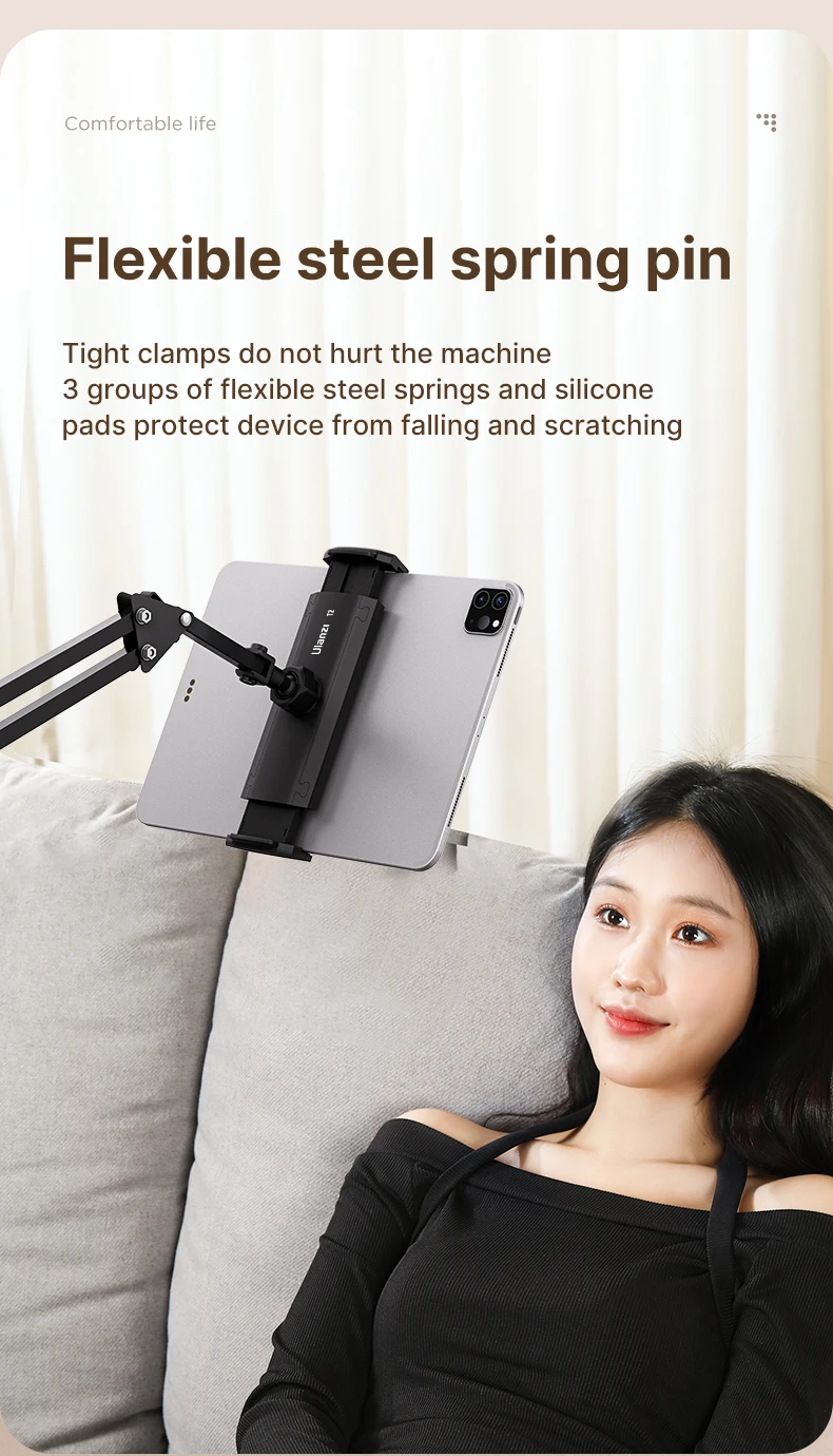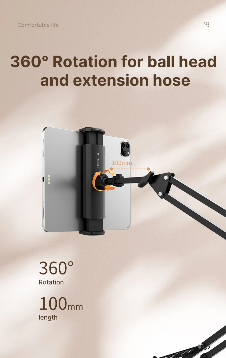 Comprar Ulanzi-Soporte de escritorio de Metal T2 para tableta, brazo largo para cama, soporte perezoso para IPad, soporte para teléfono inteligente, micrófono