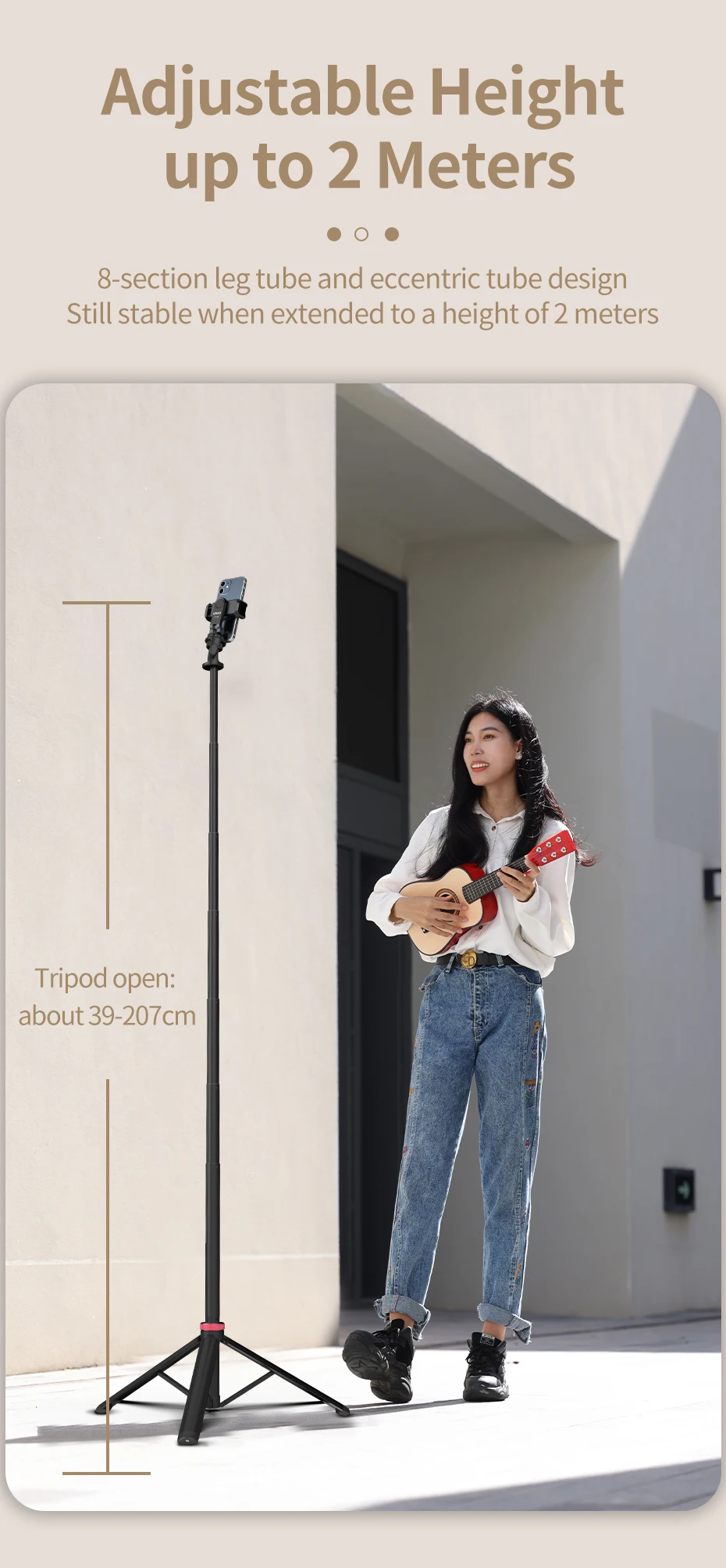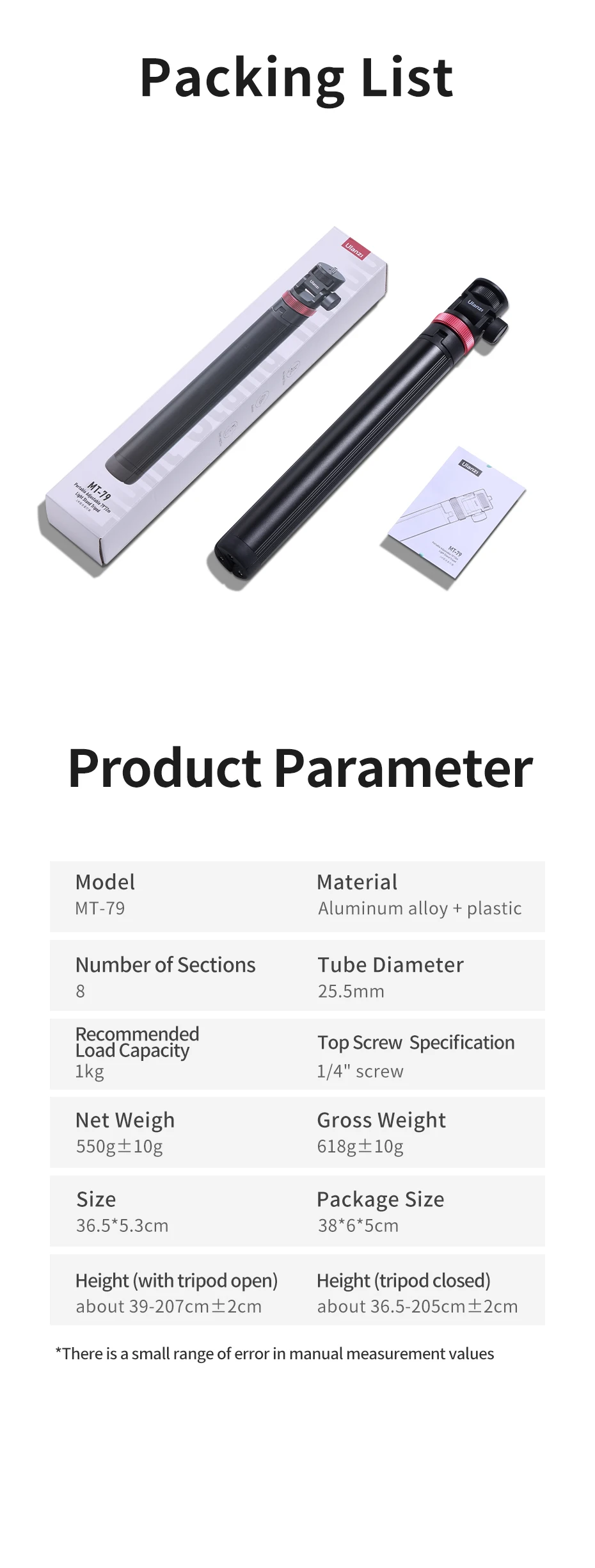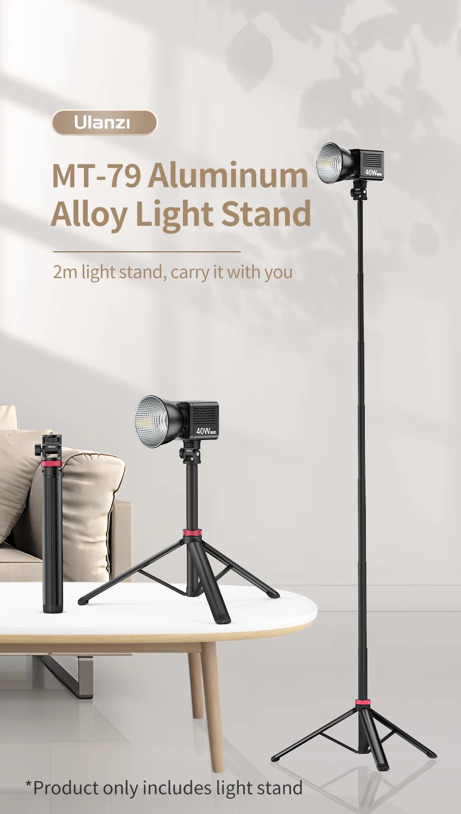 Ulanzi-Soporte de luz MT-79, trípode portátil para teléfono, Clip para Cámara de Acción, luz Cob de mano, aleación de aluminio, 2M