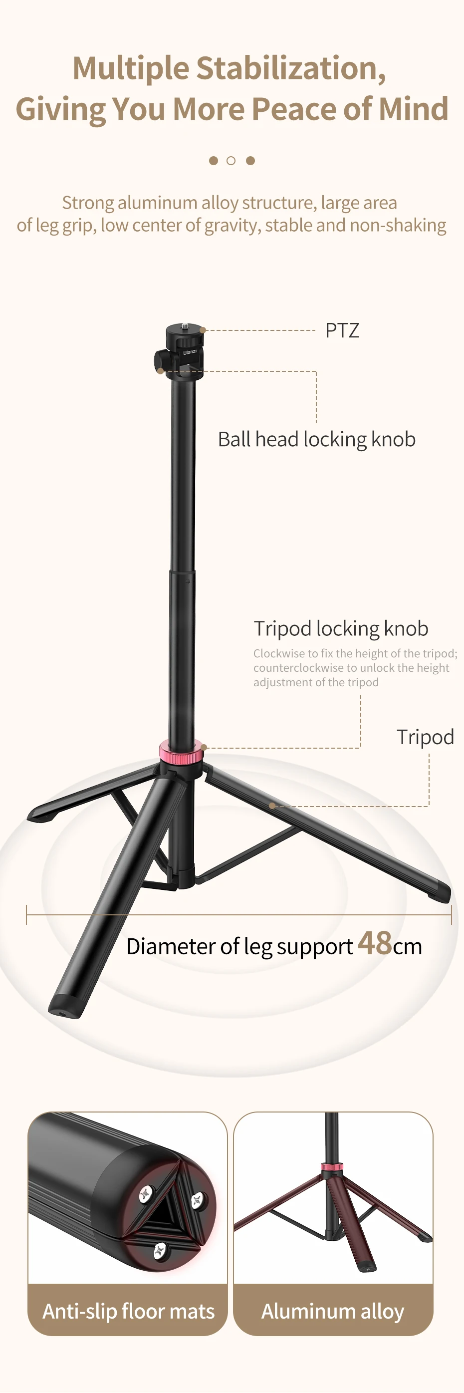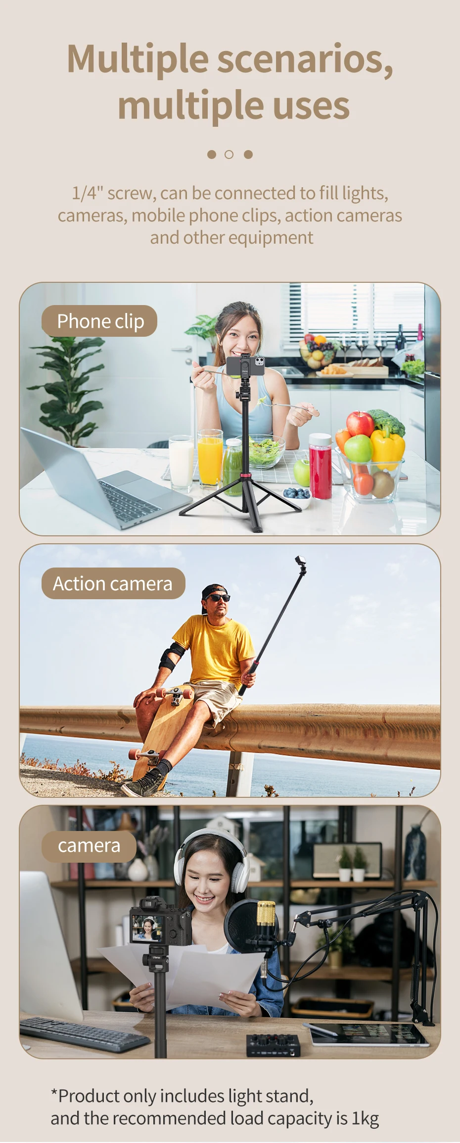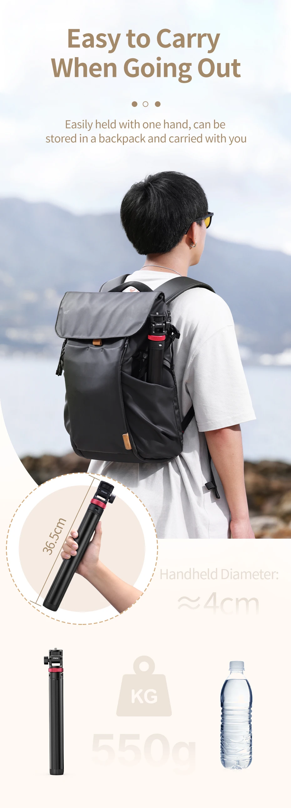 Ulanzi-Soporte de luz MT-79, trípode portátil para teléfono, Clip para Cámara de Acción, luz Cob de mano, aleación de aluminio, 2M
