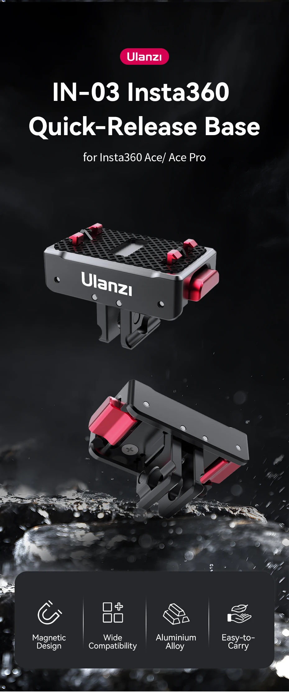 Soporte magnético de liberación rápida Ulanzi para Insta360 X4 X3 ONE X2 ONE R ONE X ONE RS Ace Pro Invisible en 360° Disparos