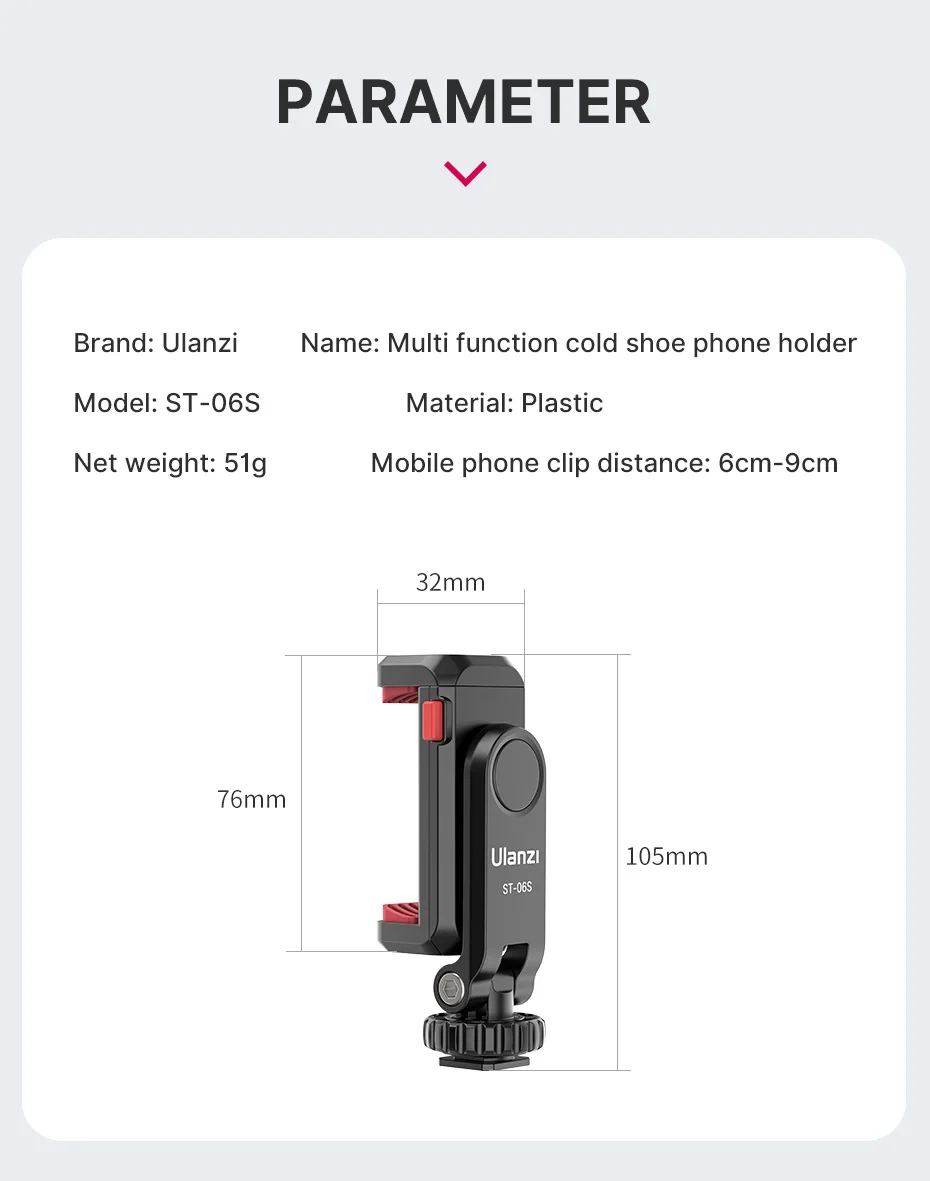 Comprar Ulanzi-soporte Vertical ST-06S para teléfono móvil, trípode con zapata fría para micrófono, Clip ligero para iPhone 12, soporte para Vlog, Smartphone