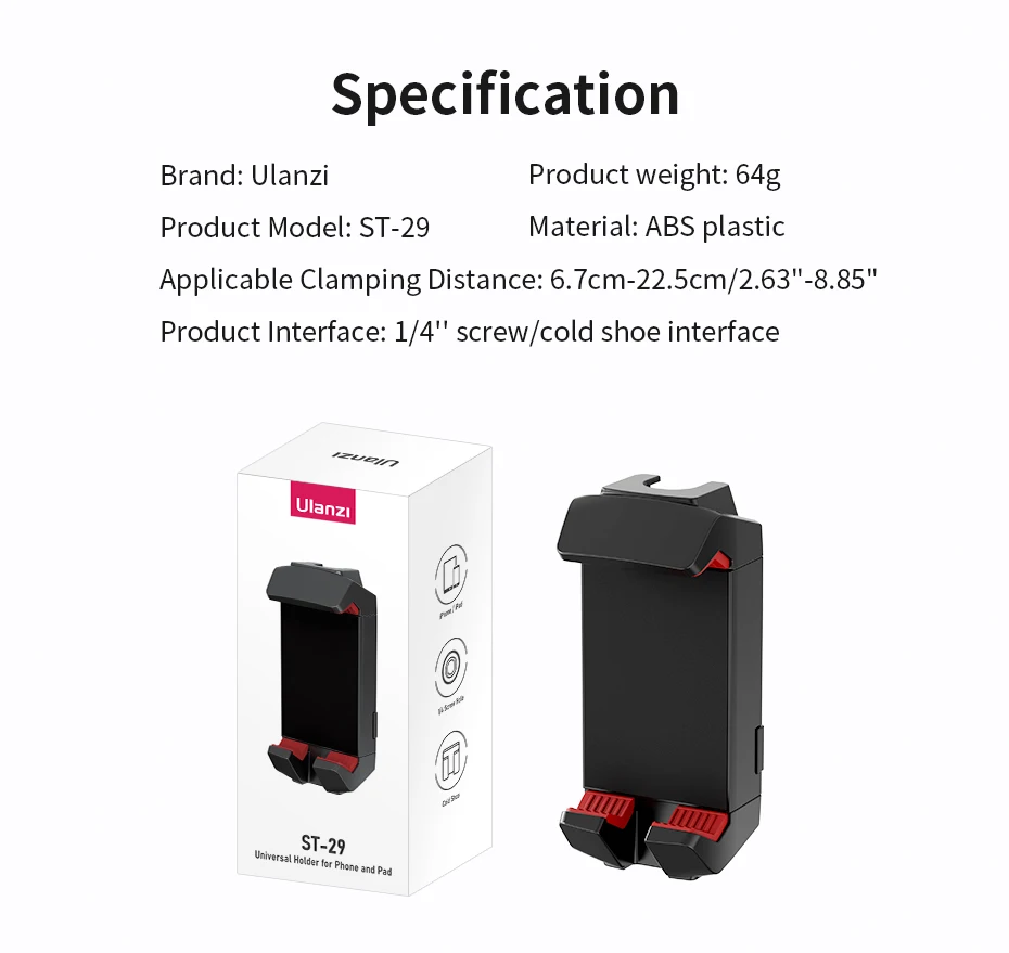 Ulanzi ST-29 Universal teléfono tableta trípode soporte Vertical disparo tableta montar abrazadera para iPad iPhone
