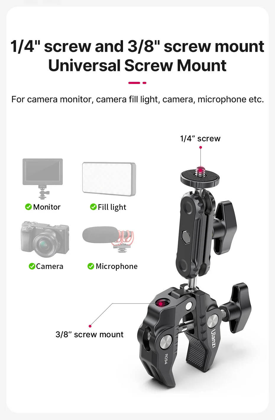 Comprar Ulanzi Super abrazadera brazo mágico con rosca 1/4 3/8 abrazadera de cabeza de bola multifunción para Canon Nikon Sony Flash de Monitor de Flash